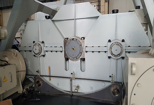 行走减速机、回转减速机为行星传动减速机,具有模块化设计,结构紧凑、承载力大、传动平稳、传动效率高等特点;提升减速机为两级传动平行轴减速机,结构类型为两入一出型式,通过前后的一级减速机后,二级小齿轮同时啮合卷筒齿轮,具有传动速比大,传递能力强的特点;推压减速机为两级传动平行轴减速机,传动速比大,传递能力强。