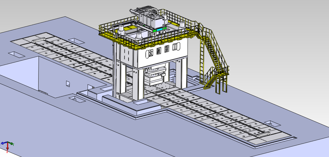 根据用户场地规划压平机可离线布置;液压站可集中布置成地下式,不占用厂房地面空间,降低噪音干扰;整机设备布置紧凑;兼容不同上料方式。