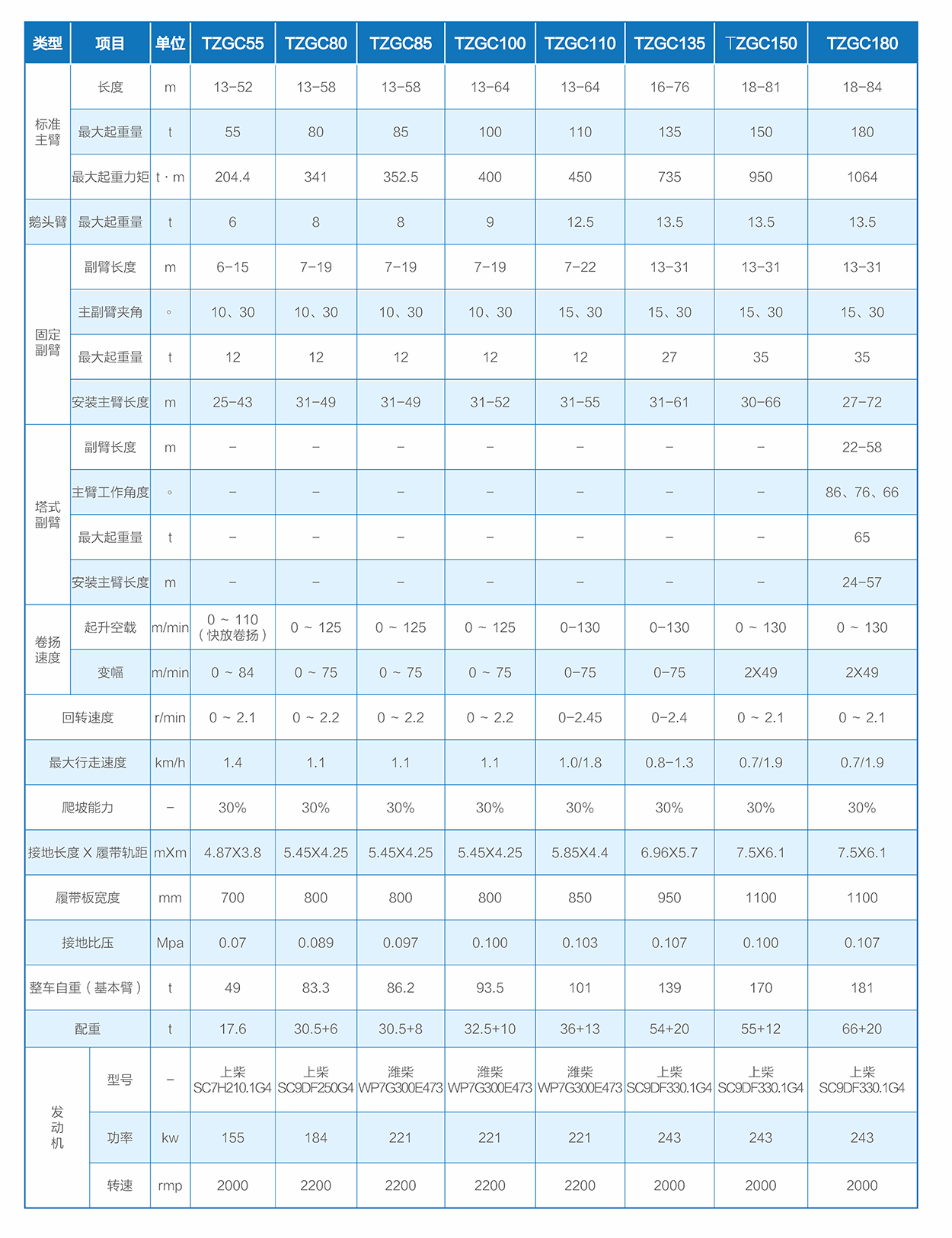 TZGC系列履带起重机,产品涵盖55-180t,微动性优异、响应性快速、可靠性出色,整机性能行业领先。