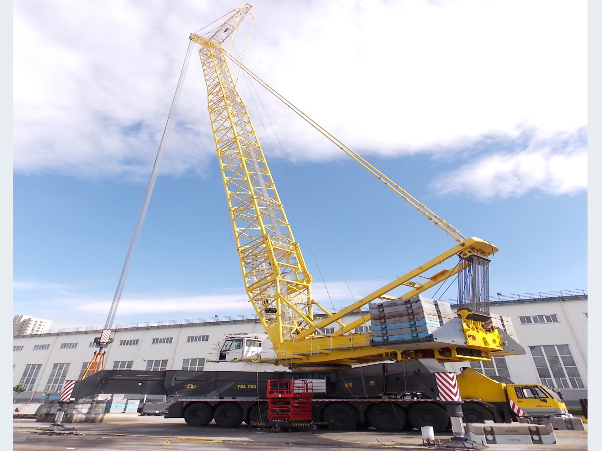 公司自主研发制造的全地面桁架臂起重机,结合全地面底盘快速转场和履带起重机超强吊装能力两种优势,特别适用于风电吊装作业,并可拓展全工况。产品规格为500t∼750t,主打产品为TZL750机型。
