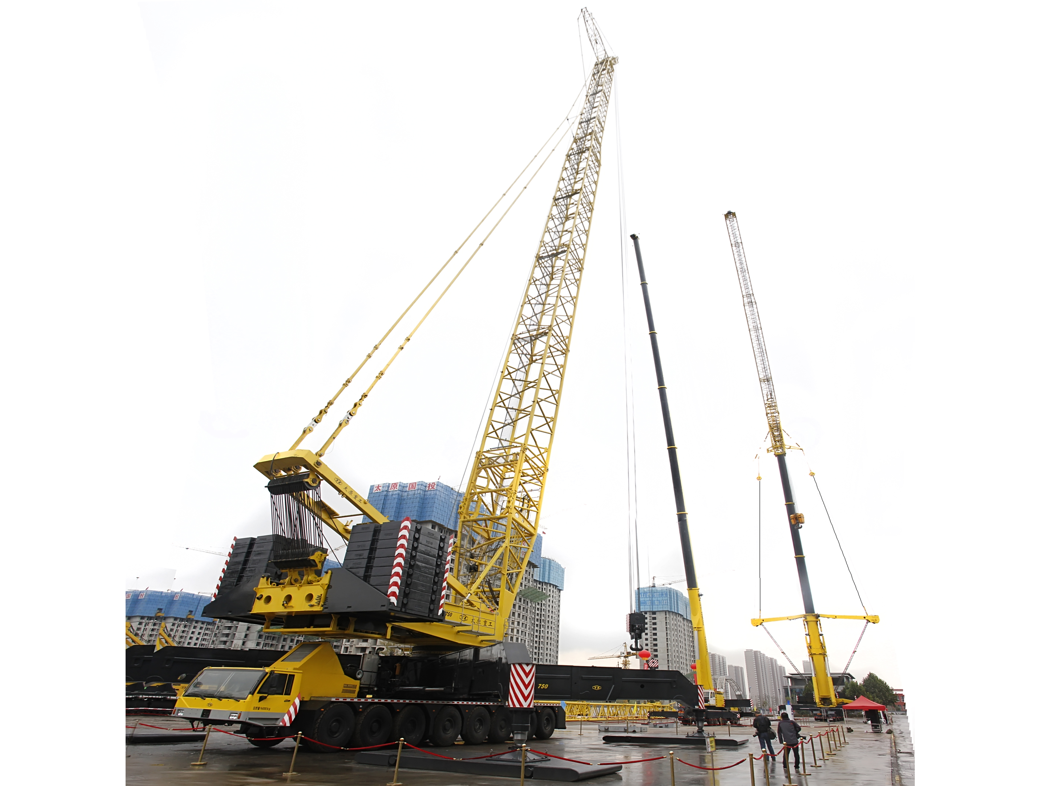 全地面桁架臂起重机,可广泛应用于风电建设、桥梁建设、石油化工、市政工程等吊装领域,满足2.5MW∼3.0MW风机安装和检修的要求,是针对风电安装特别设计的一款高效率起重机。该类起重机上车采用同等吨位履带起重机转台、臂架、超起系统,下车采用重载全地面底盘,配置大跨度星型支撑液压支腿用于起吊作业。整车配置有主臂、塔臂、超起主臂、超起塔臂、超起重型臂、基本风电臂、超起风电臂等工况。