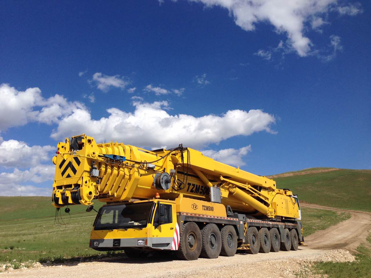 自主研发制造的全地面伸缩臂起重机,全系列产品规格为260t~1600t,主打产品为TZM260、TZM500、TZM1200等机型。已销往天津、内蒙、甘肃、北京、河北、山西等地,受到了客户广泛好评。