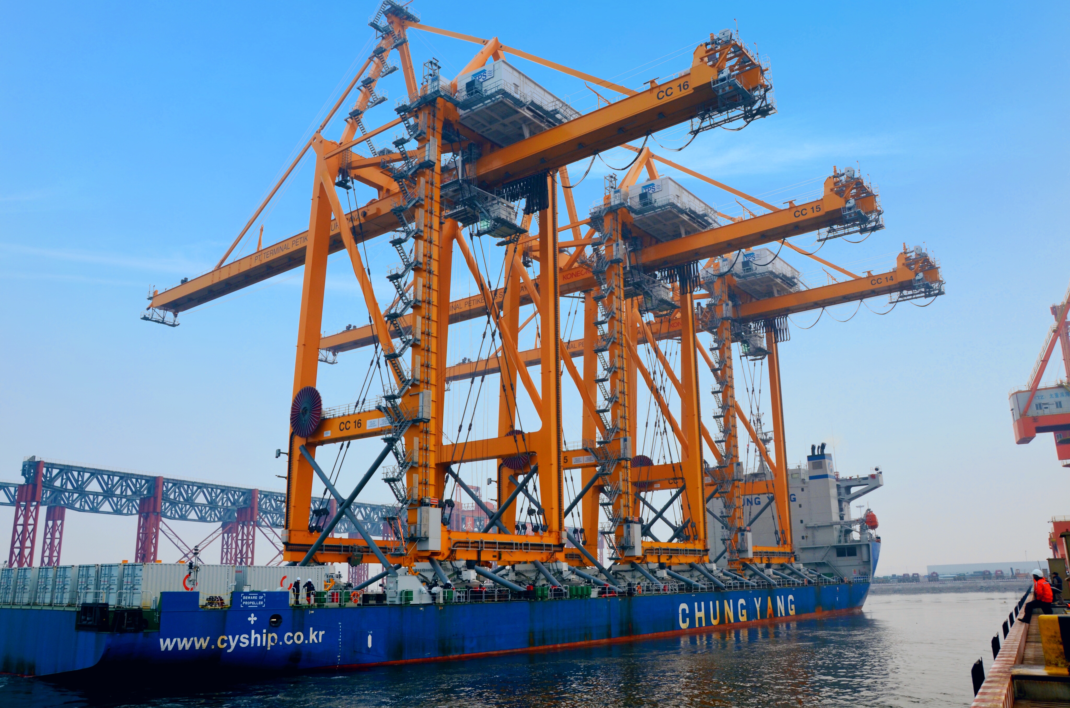 岸边集装箱桥式起重机,用于码头集装箱装卸船作业的起重机