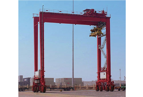 简称轮胎式场桥,是集装箱码头堆场或集装箱货场进行堆码作业的专用装卸机械,主要由起升机构、小车行走机构、大车行走机构组成。包含两个U型门框与底梁组成门式架,支承在充气橡胶轮胎上,可在规定的行车通道上行走。可按滚装发运的方式向客户提供所需的轮胎式集装箱门式起重机。