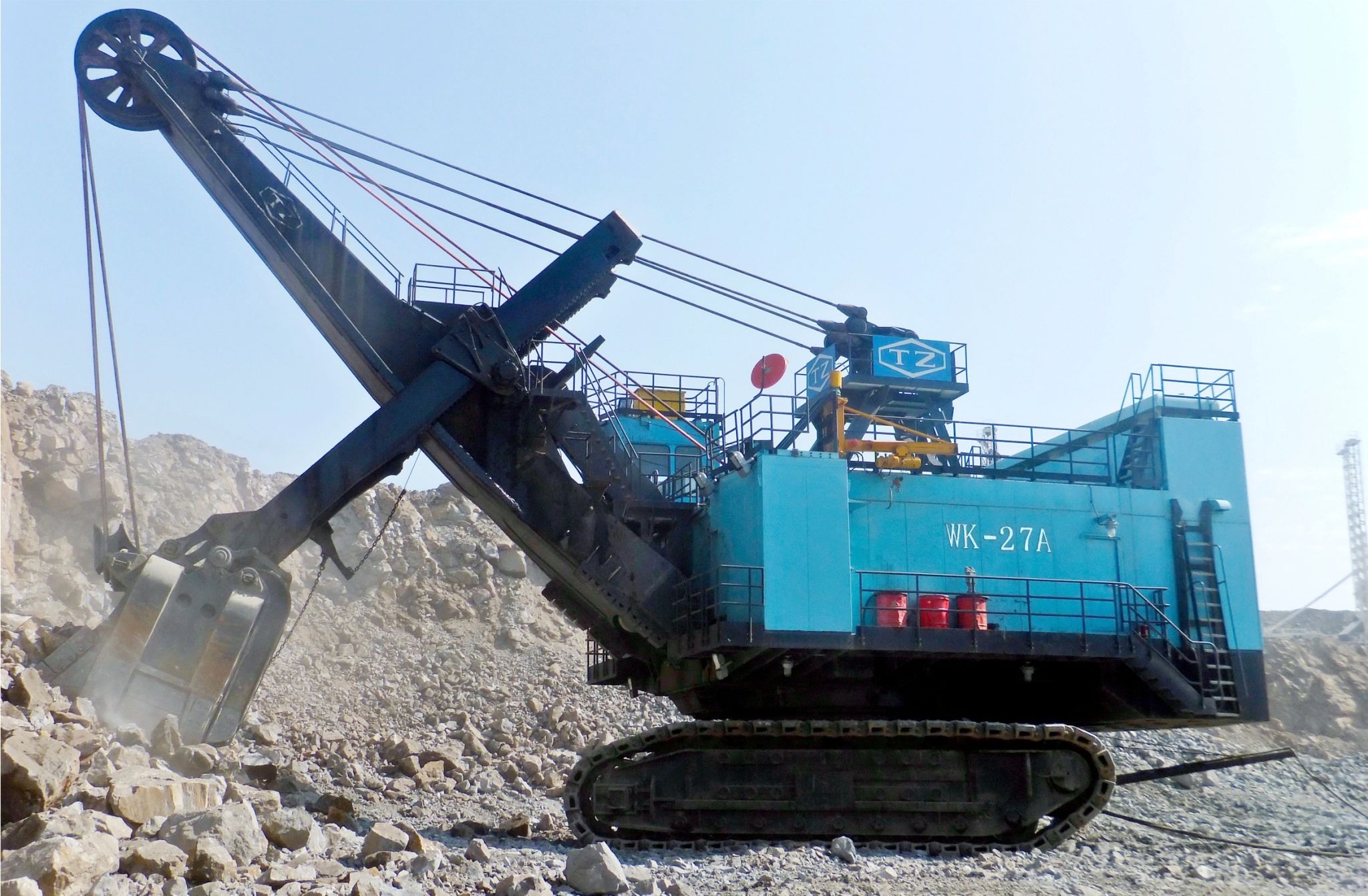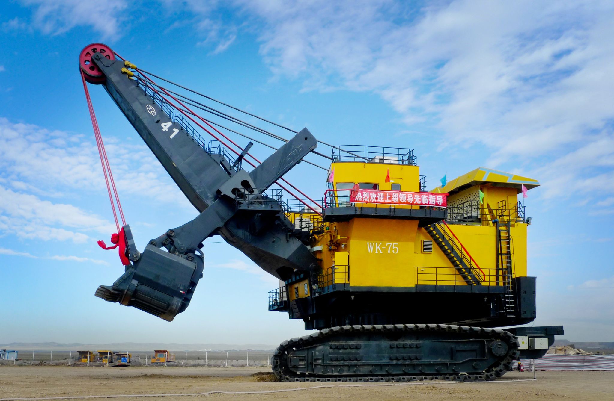 WK系列矿用机械正铲式挖掘机,标准斗容4m³~75m³,已生产1400余台,广泛应用于大型露天煤矿、铁矿及有色金属矿山的剥离和采装作业,数十台产品出口到10余个国家。