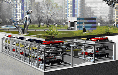 PPY平面移动类机械式停车设备是在同一水平层上用搬运器平面移动汽车或载车板,多层之间是靠升降机来实现不同层之间的转换,实现汽车的存取。