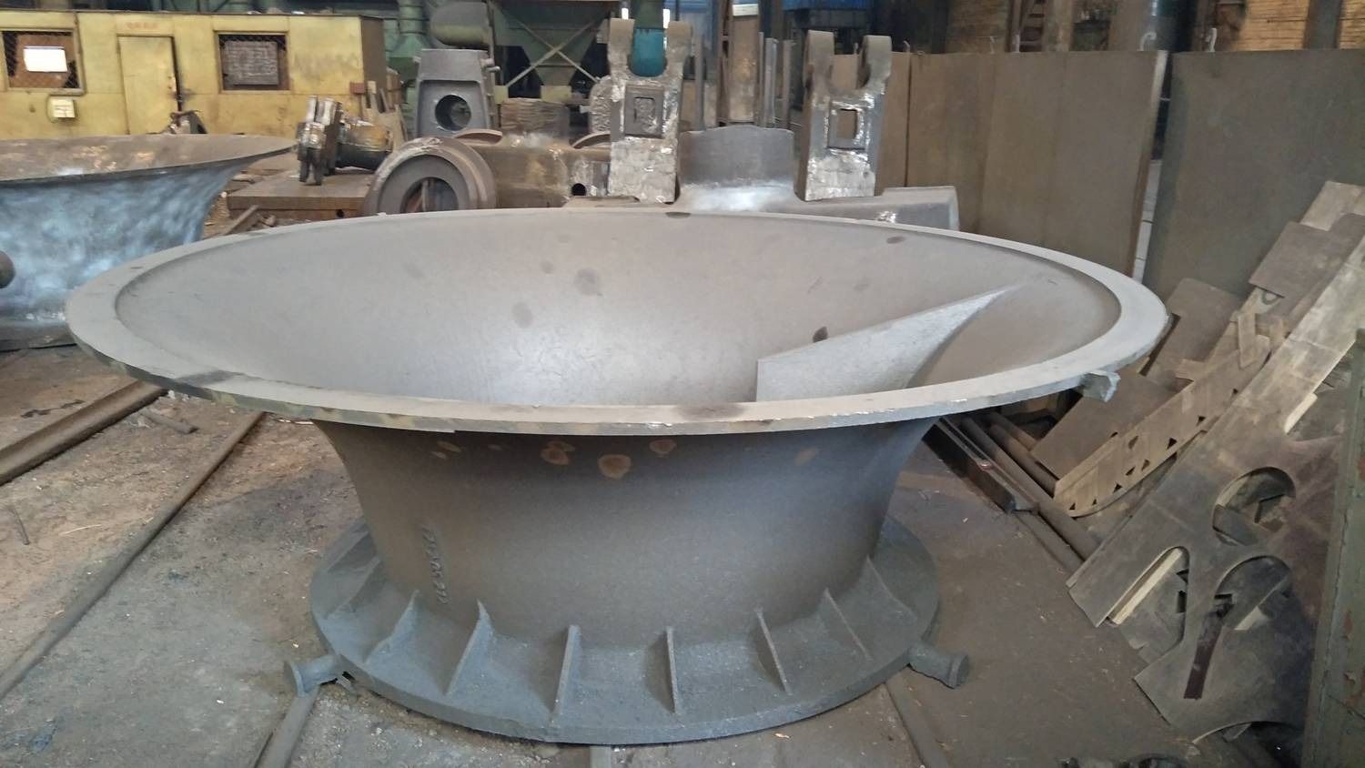 可生产毛重565t以下的各种铸钢件,年生产能力55000t以上,生产材质包括碳钢、低合金钢、高锰钢、不锈钢和耐热钢等,主要采用碱酚醛树脂砂工艺造型、精炼钢水浇注。