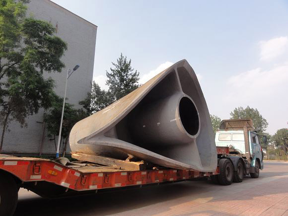 多年来,先后制造了近百件船用类铸件,主要用户有大连船厂、广船国际有限公司、江苏新时代船厂、扬子江船业集团等著名企业,同时该类铸件出口到韩国、德国、日本等国家。为中冶京城生产的32万吨原油船挂舵臂,尺寸为10500mmX6700mmX2400mm,毛重达187吨;艉球轮廓尺寸为8472mm×2810mm×4640mm,毛重达107吨。