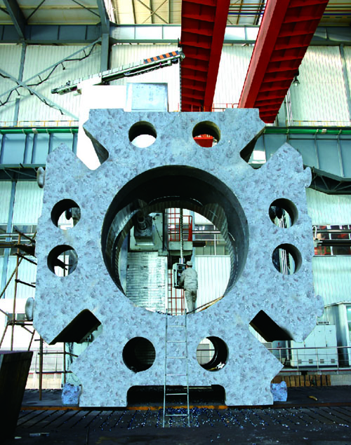 大型压机铸件是我公司铸造类的主导产品,包括前梁,后梁,挤压梁,上、下横梁,活动横梁等,235MN挤压机和350MN多向复合挤压机主体铸件,在铸造界居于前列。对于大型压机铸件,有着多年技术储备和规范成熟的生产流程。