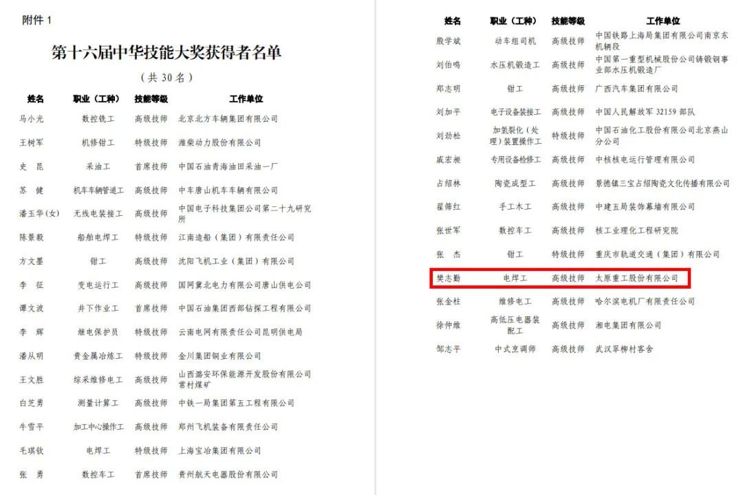 近日,第十六届“中华技能大奖”和“全国技术能手”名单出炉!全国仅30名中华技能大奖获得者,永利赌场
