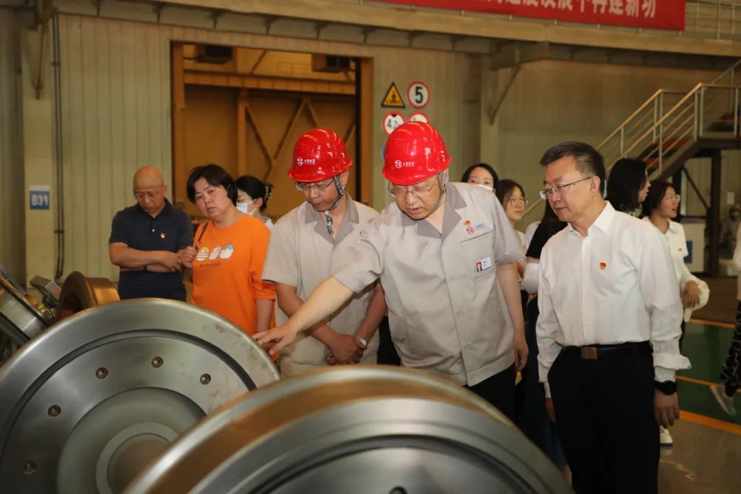 轨道公司坚定推进国际化战略,积极开拓国际市场,产品出口至六十多个国家和地区,成为全球唯一的轨道交通产品全谱系全流程研发制造基地。在车轮厂二线,机声轰鸣、热浪翻滚,只见机器行云流水般运转,却鲜见工人身影。沿着习近平总书记走过的参观路线,客人一行认真察看了一片车轮从钢坯到成品的蝶变,切身感受到智能工厂的震撼与魅力。