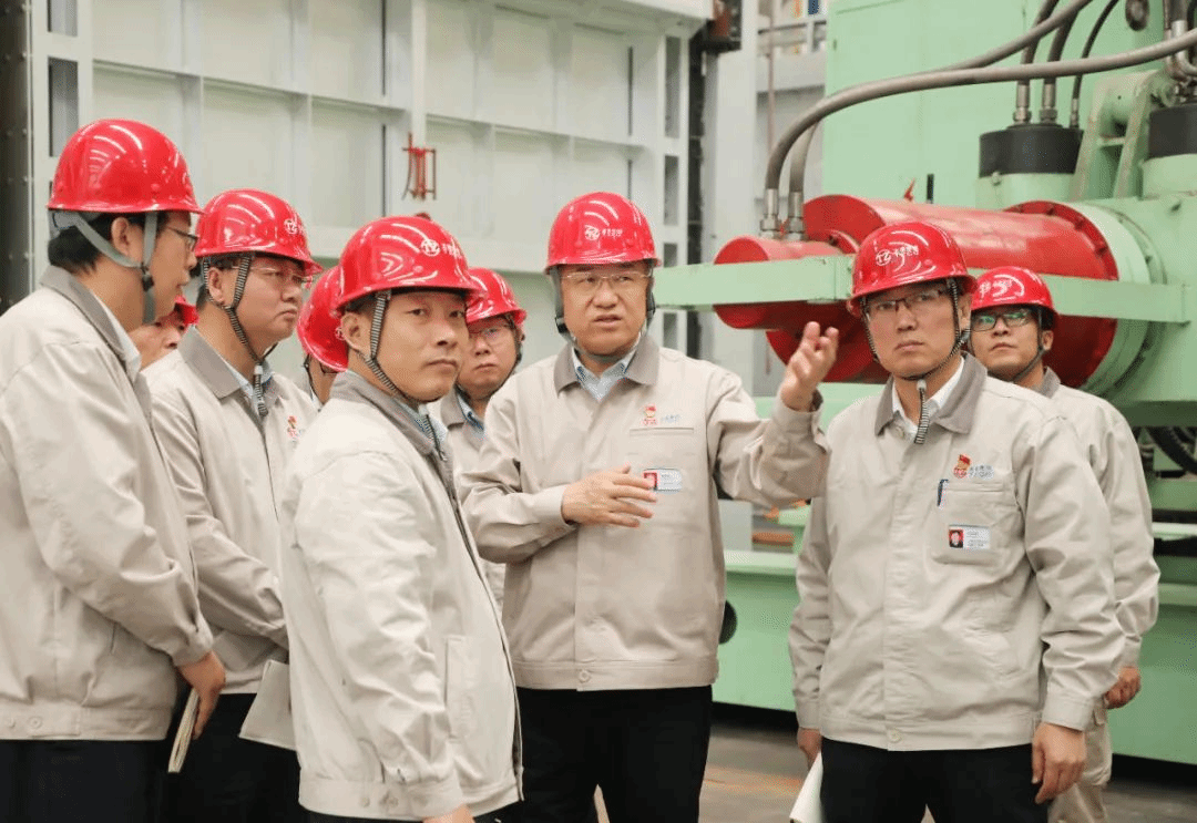 作为新园区投资最大、厂房面积占地最大的项目,铸锻件联合厂房的每一步发展都备受关注。韩珍堂分别调研了热处理车间、锻造车间和冶炼车间:中控芯轴在45MN的压机中进行最后的成型锻造,80吨电弧炉内铁水飞涌、火星四溅,大国重器的坚实基石正在铸就。他说,四季度刚刚开始,正是冲刺全年目标的黄金时期。要对标行业一流,加强人员技能培训,严格把控好工艺细节,做到规范、严谨、安全。要打造精益生产车间,全面推行清洁生产,降低噪音强度,做好烟尘治理,以绿色制造助力“双碳”目标,向着建设工艺最全、流程最优、智慧集约、绿色安全的一流铸锻件制造基地加速迈进。