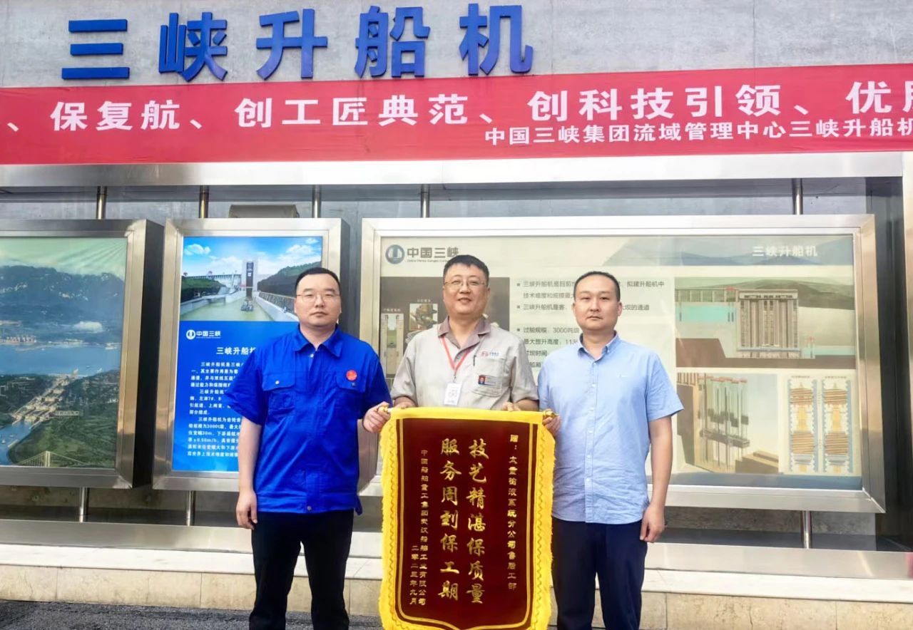 在三峡升船机2023年计划性停航检修项目总结大会上,公司服务人员雷明同志被评为“先进个人”称号;一面写着“技艺精湛保质量,服务周到保工期”的锦旗,展现用户对于永利赌场