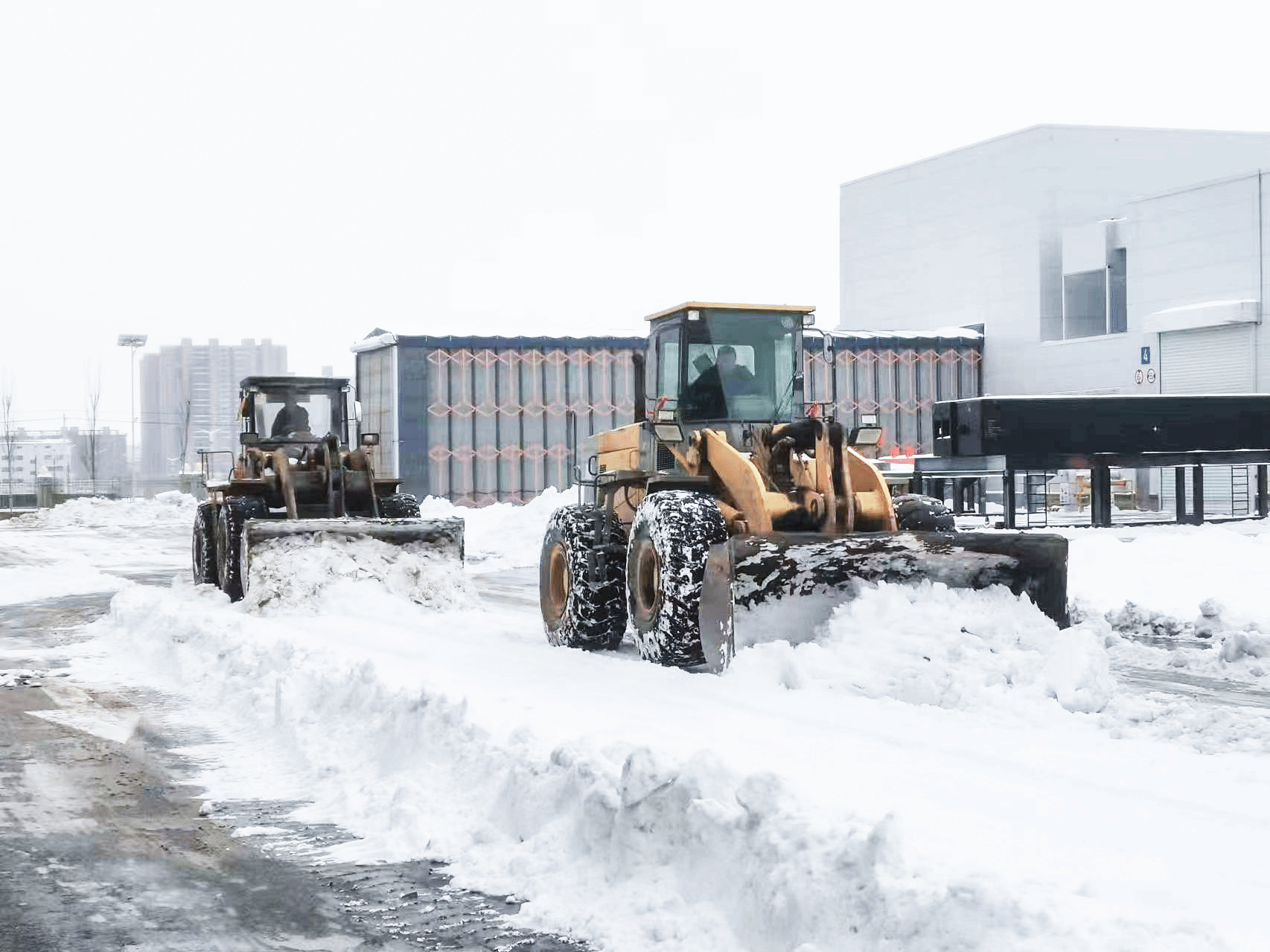 智能高端装备产业园区采取机械除雪方式,多台设备以极高的清雪效率上演一场精彩的冰雪“交响曲”,保证了公司生产经营正常运行,确保了道路通畅和职工出行安全。