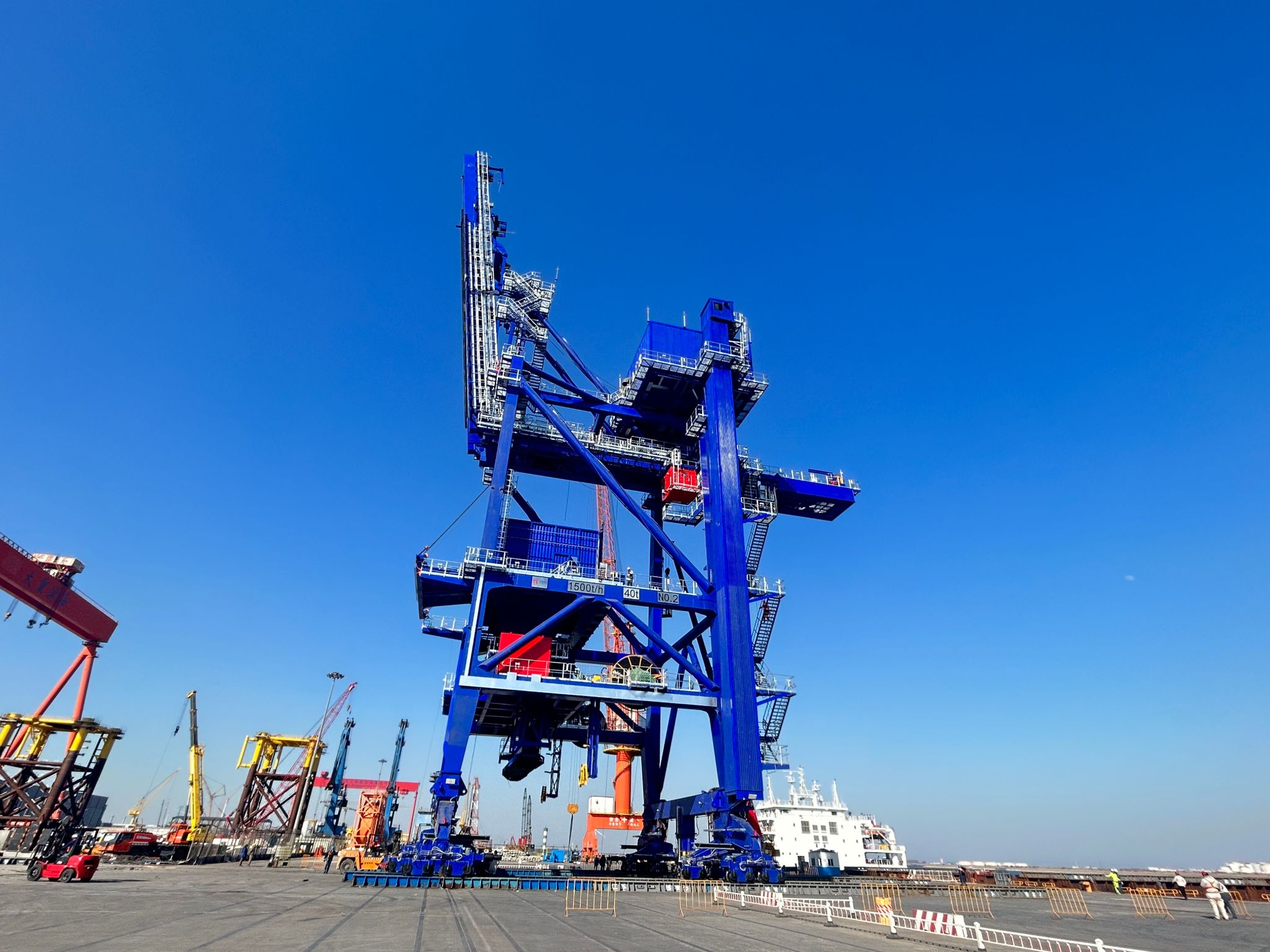 作为高效率、大承载量的港口装卸设备,此台卸船机由滨海公司自主研发生产,技术人员克服了结构复杂、精度要求高等一系列技术难题,采用了诸多创新性设计,使其技术参数和性能指标均达到国际先进水平。