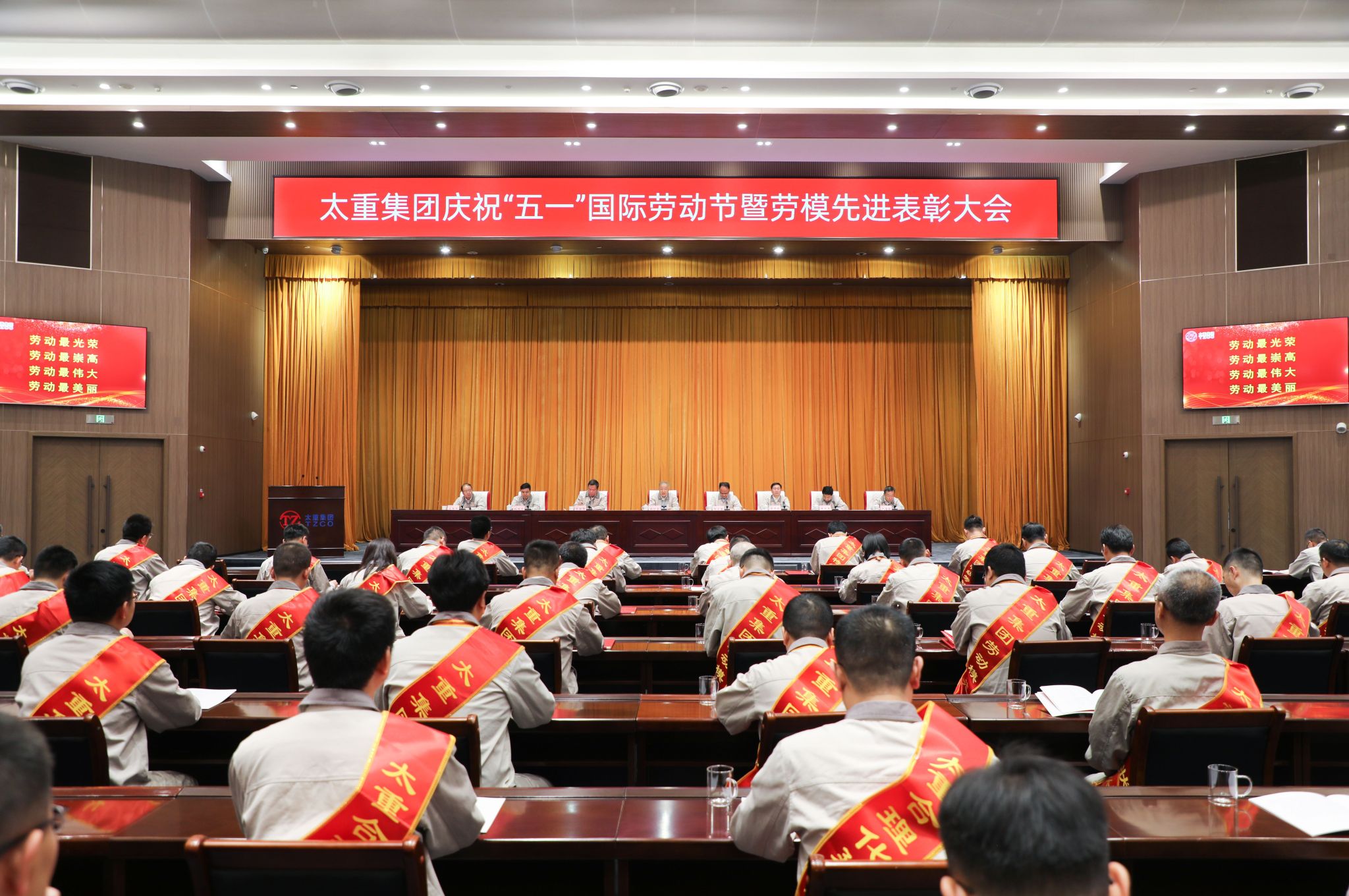 装备的鲜明底色。三是要体现担当之为,充分展现新面貌。要提升“学”的劲头,主动适应新一轮科技革命和产业变革的需要,练就一身真本领,掌握一手好技术,争当本岗位的行家里手。要强化“硬”的作风,坚持“一线”工作法,常态化到生产一线、到项目一线、到用户一线工作,推动问题在一线解决、决策在一线执行、成效在一线检验。要保持“快”的节奏,坚持“日事日毕、日清日高”,高效率落实中央、省委各项部署和公司发展目标。要践行“新”的理念,聚焦思维创新、路径创新、方式创新,补短板、强基础、扬优势,突破工作瓶颈和发展难题。四是要铆足实干之劲,全面创造新业绩。要在全面深化改革中“挑重担”,按照新一轮国有企业改革深化提升行动任务要求,聚焦解决效率、动能、责任问题,全面打造“科学化、市场化、法治化、精细化”四化同步的现代企业治理体系。要在科技质量工作中“当先锋”,持续贯彻落实公司科技质量大会要求,强化市场、效益和自主三个导向,坚持高端化、智能化、绿色化、国产化定位,推动科技质量工作迈上新台阶。要在全力开拓市场中“打头阵”,强化“全员营销”,开展“后市场”服务,加大国际市场开拓力度。要在实施精细管理中“作表率”,强化效率、效能、效益导向,推动“三精三致”精准落地,实现提质增效,强化合规管理,守牢安全底线。韩珍堂强调,各级党组织、各单位要始终坚持以人为本的发展理念,用心用情用力为职工群众做好事、办实事、解难事,推进民生实事全面落地。要结合省委巡视要求,抓好职工群众急难愁盼问题的解决,不断提升职工群众获得感幸福感满意度。工会要充分发挥党联系职工群众的桥梁和纽带作用,健全帮扶救助困难职工群众机制,丰富职工文化生活,真正把职工群众的“美好愿景”变成“幸福实景”。韩珍堂强调,劳动创造幸福,奋斗成就伟业。要更加紧密地团结在以习近平同志为核心的党中央周围,在劳模精神、劳动精神、工匠精神的感召下,艰苦奋斗、开拓进取、只争朝夕,向着建设具有国际一流竞争力的现代智能装备制造企业的战略目标阔步前进,以优异成绩迎接中华人民共和国成立75周年!会议由集团公司党委副书记、副董事长、总经理陶家晋主持,公司党委专职副书记、副董事长、工会主席张新伟宣读关于表彰先进集体和先进个人的决定,公司党委常委、纪委书记蔡开东宣读关于表彰第四届“最可爱的奋斗者”、职工技术创新活动先进集体和先进个人的决定。会议还宣读了倡议书,在嘹亮的国际歌中圆满结束。会后,集团公司领导与受表彰的先进集体和个人代表合影留念。公司领导及各职能部门、业务中心和子、分公司负责人,各单位党委副书记、工会主席及获奖代表参加了会议。会议采取“主会场+分会场”的视频会议形式召开。