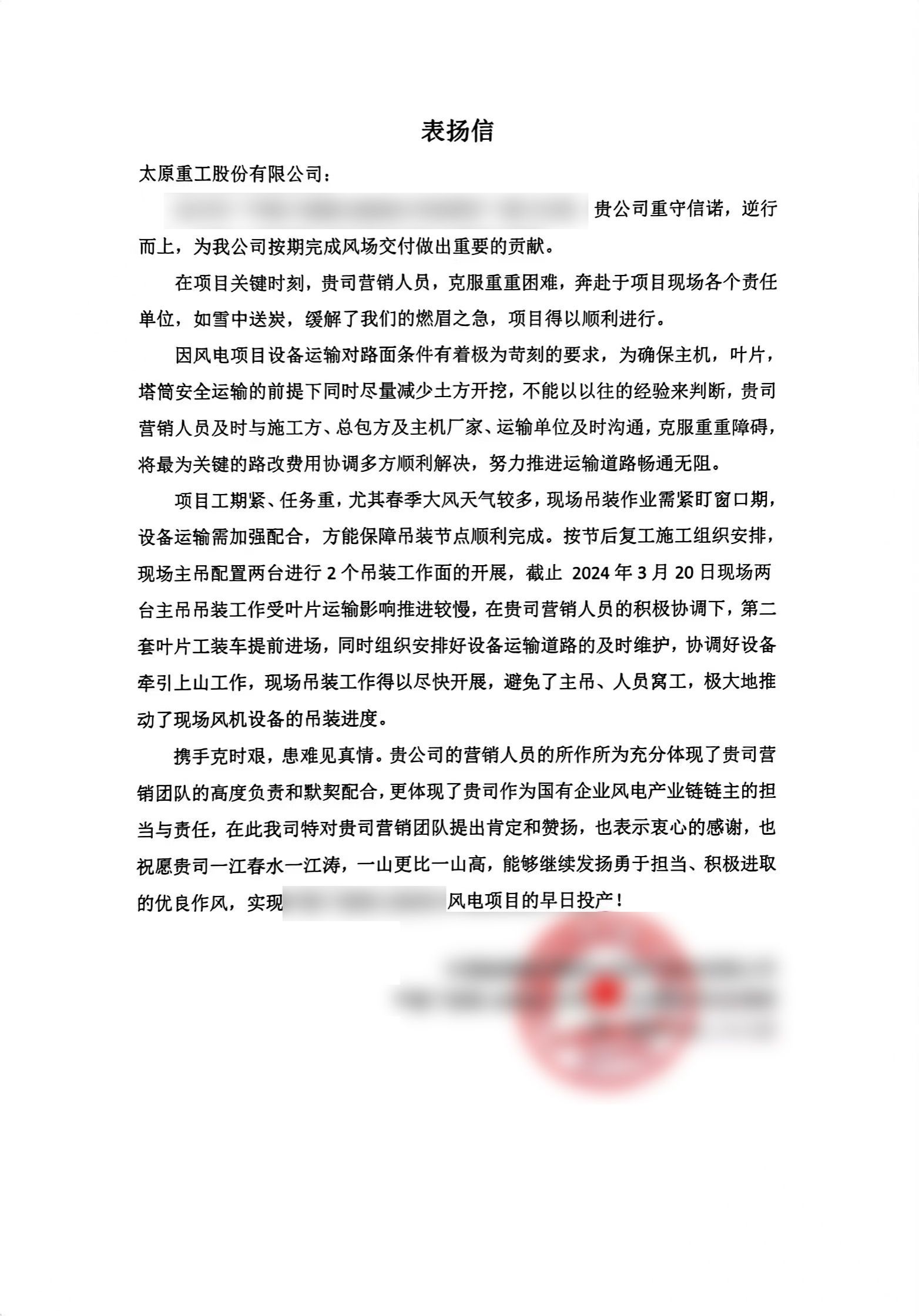 ●体现了贵司作为国有企业风电产业链链主的担当与责任。