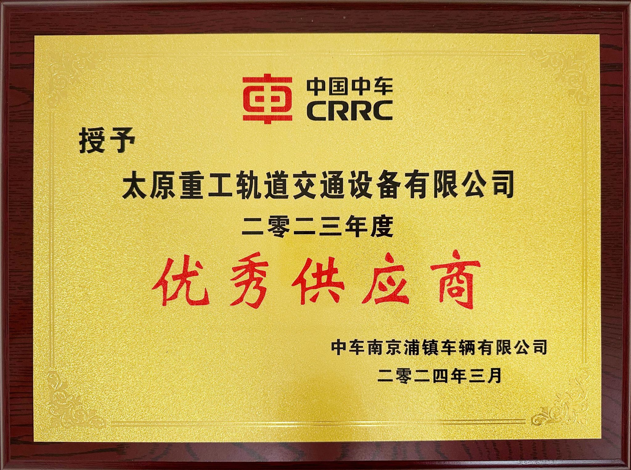 近日,轨道公司传来好消息,凭借卓越的产品实力,荣获中车南京浦镇车辆有限公司“2023年度优秀供应商”称号。此次获奖,不仅是对永利赌场
