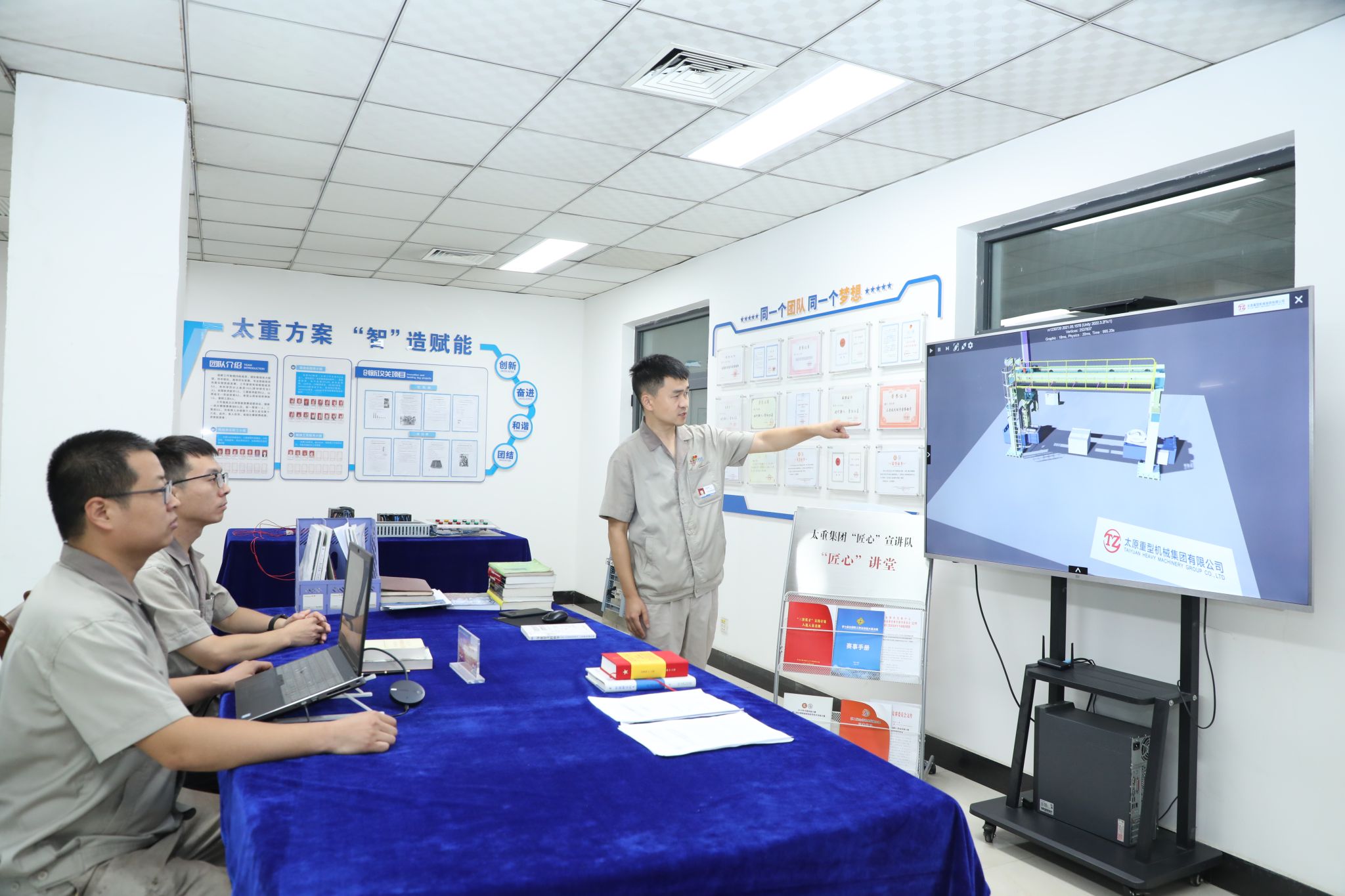 轨道公司作为国家级智能制造示范工厂,对智能制造技术技能人才有着极高的要求。宋志伟工作室在2022年就被评为省级技能大师工作室和省级职工创新工作室,2023年被中国重型机械工业协会评为中国重型机械行业工匠工作室。工作室成员技能卓越且不断向复合型发展,很多都是拥有国家职业资格与职称的双师型人才,拥有全国青年岗位能手标兵1人,全国技术能手1人,享受国务院政府特殊津贴1人,三晋技术能手6人。