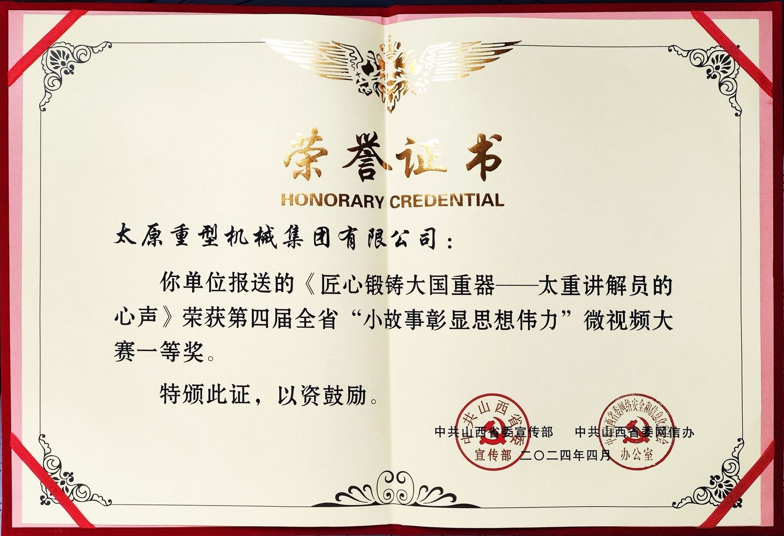 守初心铸匠心,砺恒心致创新!在近日举办的第五届全省“小故事彰显思想伟力”微视频作品征集展示活动启动仪式暨第四届颁奖活动上,公司报送的微视频,凭借真挚情感和深刻内涵,荣获大赛一等奖!