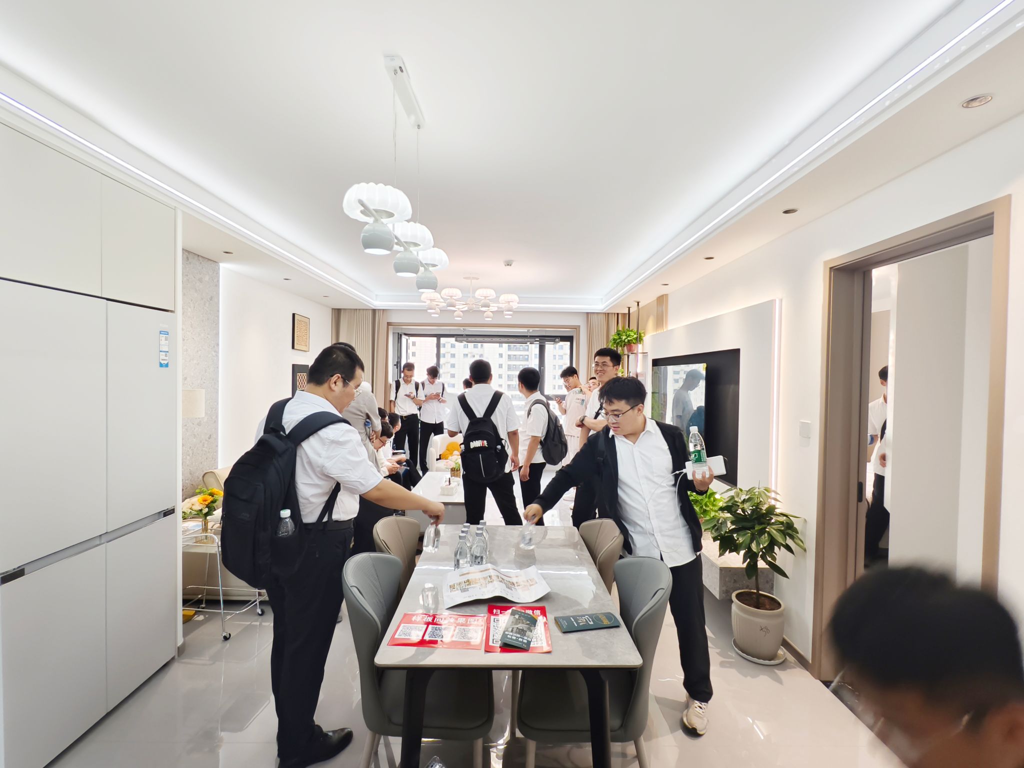 配套住宅已建成两期,一期住宅13栋,共有2584户,采光充足、实景现房、户型多样。与一期相比,二期项目不仅延续了一期的优质品质,而且在居住面积和户型格局上进行了升级,居住舒适度更高,进一步满足大家多元化需求。新职工们兴致盎然,一站式参观了销售中心、交房样板间、园林、精装样板间。工作人员详细介绍了项目区位优势、户型设计、园林绿化、规划配套及优惠购房政策等。大家专注聆听,眼神中满是对未来工作生活的向往。
