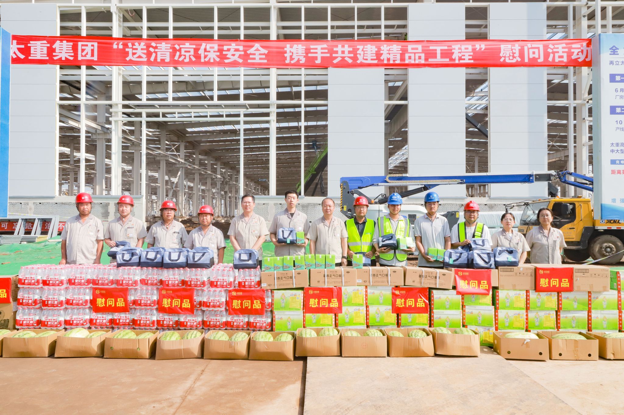 当前,公司将工程项目建设作为推动高质量高速度发展的“强引擎”和“硬支撑”,加速推进了一批有影响、有实力的工程项目,各项目组紧盯目标,战盛夏、斗酷暑,抢进度、重安全,不畏困难、奋勇拼搏,有条不紊地推进项目建设工作。为了表达集团公司对项目一线参建职工的关怀与感谢,把浓浓的关心关爱传递到一线职工的身边,慰问组一行先后深入工程起重机、四轮一带、工程齿轮箱、全国重点实验室等项目,为在高温下坚守岗位的一线职工送去洗漱包、饮品、药品、西瓜等清凉大礼包。活动期间,慰问组一行详细了解现场作业情况及项目部安全措施落实情况,确保职工在高温作业中的安全与健康,要求项目建设责任部门要时刻关注高温施工及汛期安全,自觉强化安全意识,坚决杜绝违章作业,及时消除安全隐患;要紧盯项目建设时间节点,抢抓施工黄金期,在保证质量和安全的前提下,全力推动项目建设提速增效。