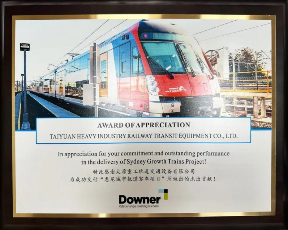 近日,公司收到一枚来自澳大利亚Downer公司的感谢奖牌,对轨道公司为“悉尼城市轨道客车项目”成功交付做出的杰出贡献表示感谢,为永利赌场