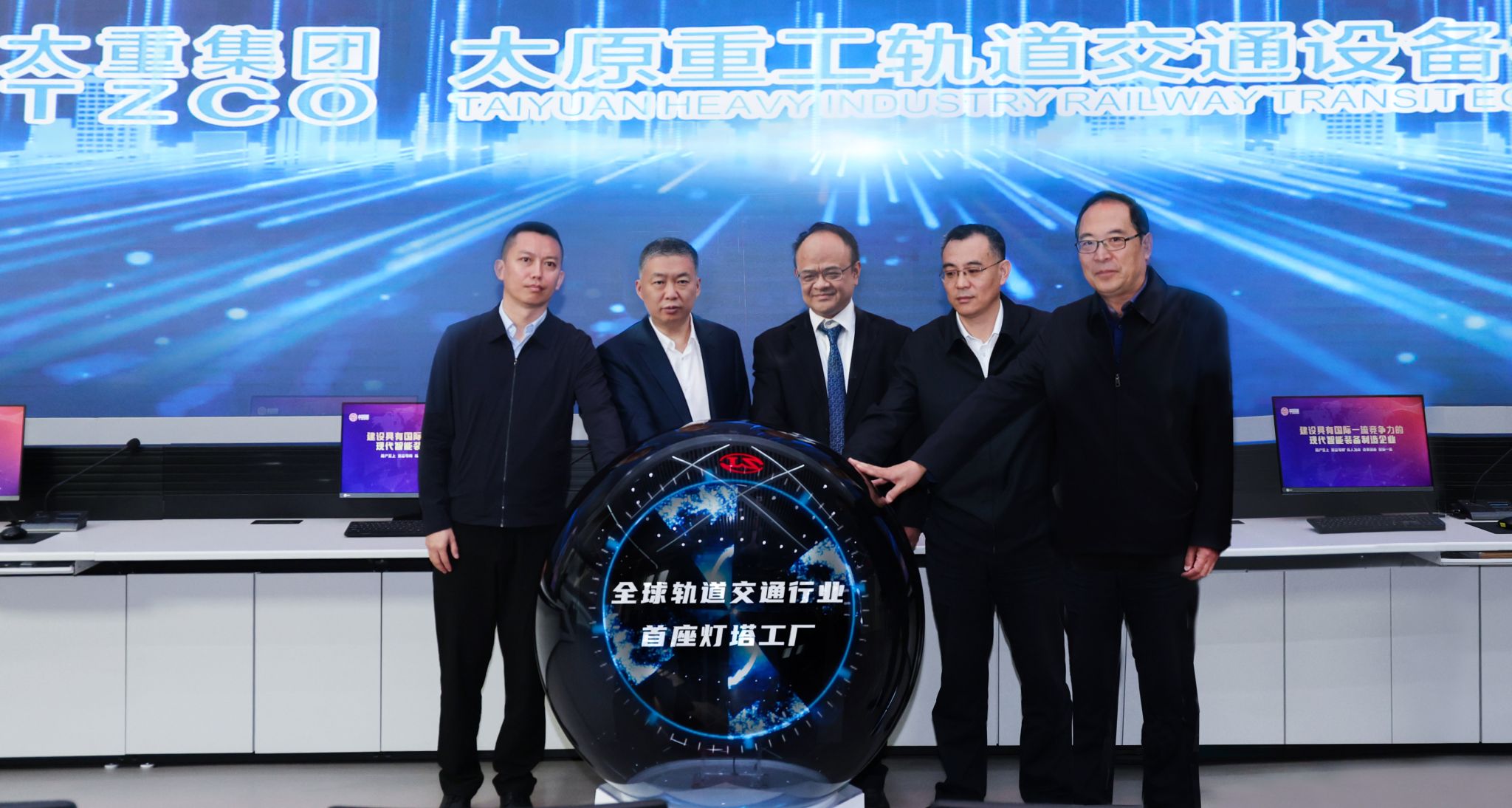 领导嘉宾共同按下启动键,大屏幕华丽展开,灯塔点亮,“全球轨道交通行业首座灯塔工厂”字样惊艳亮相、振奋人心。