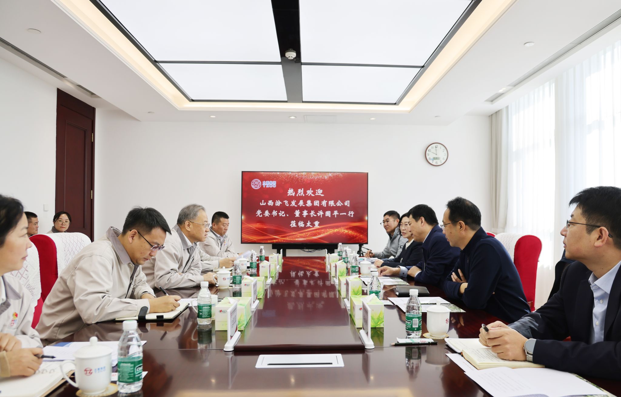 10月28日,集团公司党委书记、董事长韩珍堂热情接待了山西汾飞发展集团有限公司党委书记、董事长许国平一行,双方围绕持续拓宽合作领域、提升合作层次、创新合作方式展开深入交流。