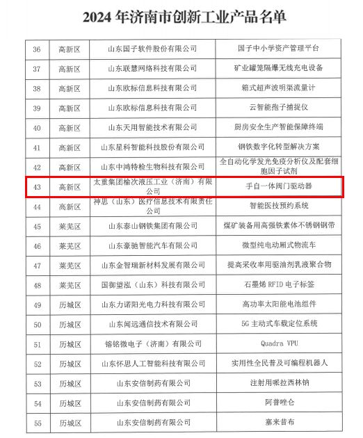 首次参评收获丰!近日,济南市工业和信息化局公布了2024年济南市创新工业产品名单,永利赌场