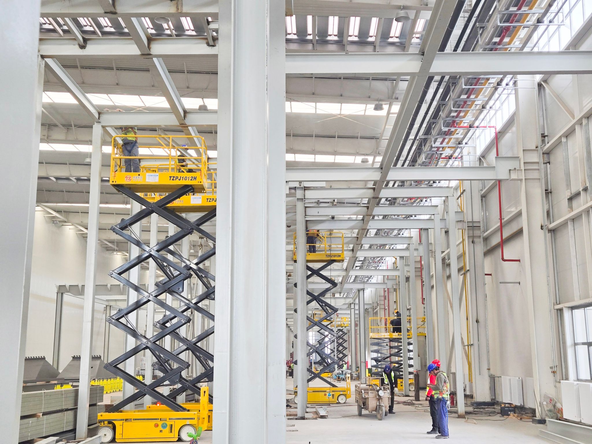 作为2024年山西省重点工程项目,该园区是公司打造“3+5+3”产品布局的重要一环,自建设以来就备受关注。园区规划有装配、焊接、涂装、物流和检测五类共17条产线,达产后具备年产3万台整机的生产能力,将极大满足国内外用户的需求。