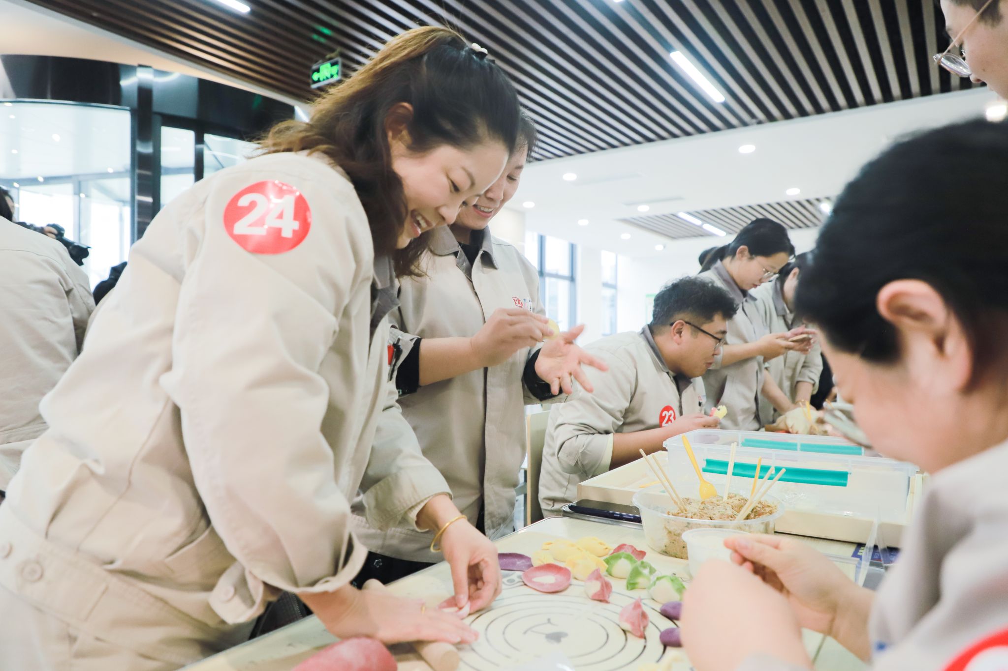 12月19日,冬至前夕,公司包饺子比赛在智能高端装备产业园区东食堂举行。“有花,有鱼,有平安,有幸福……”各种奇思妙想,伴随着色彩缤纷的饺子逐一展现在职工们的巧手下,欢声笑语凝结成冬日里最温暖的祝福。