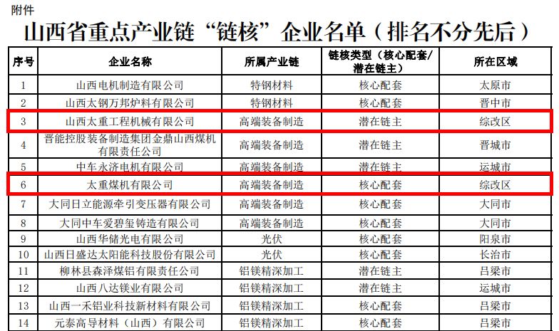 近日,在山西省工业和信息化厅最新发布的关于山西省重点产业链“链核”企业名单中,山西永利赌场