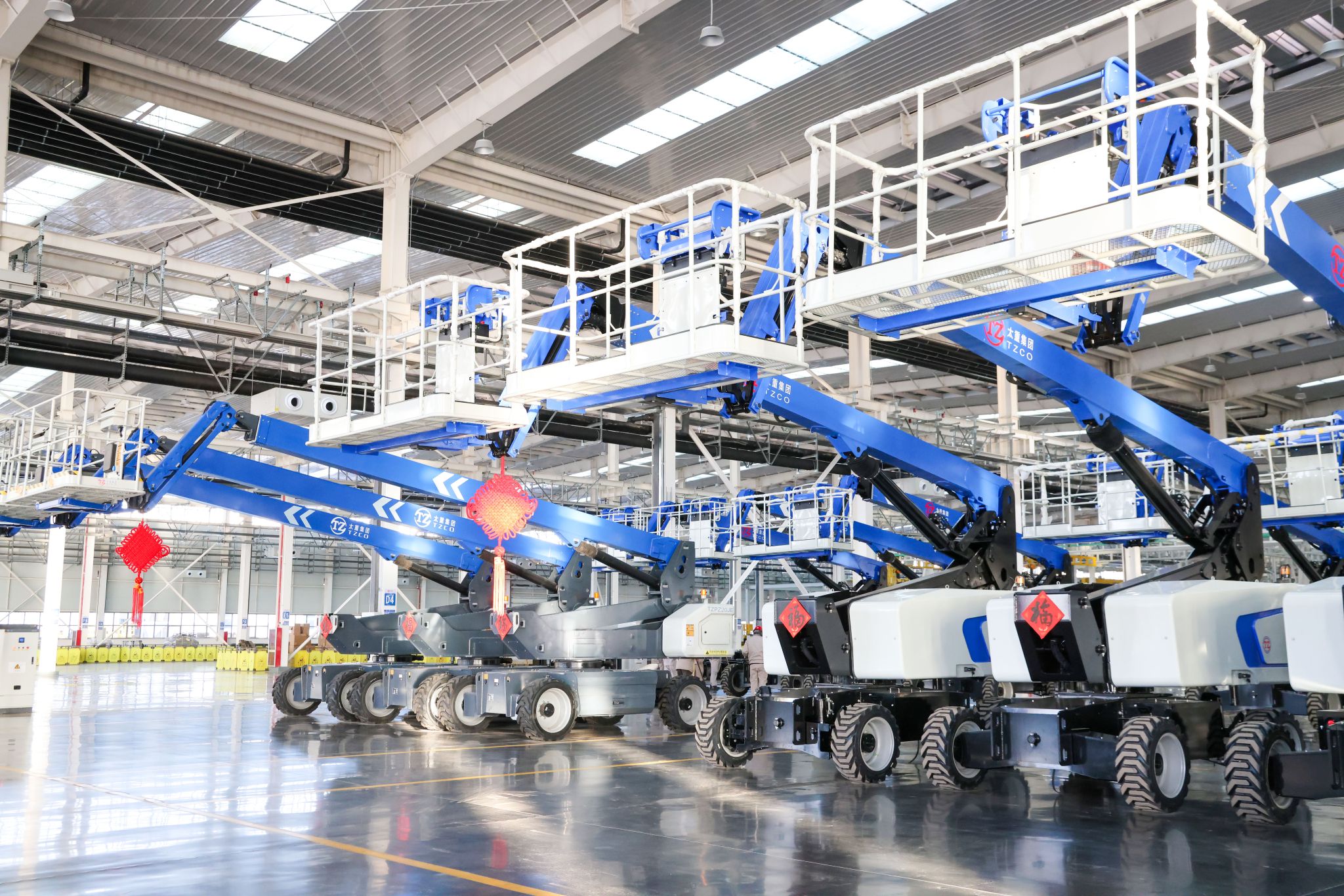 做精批量产品,发展新质生产力的“主引擎”之一。当前,汽车起重机装配线、臂车装配线已经成功投产,中大型工程起重机智能制造项目进入最后的冲刺收尾阶段。气派敞亮的生产厂房内,12台贴着“福”字的登高作业平台傲然挺立、蓄势待发,迎接新一年的愿景和用户的期望。