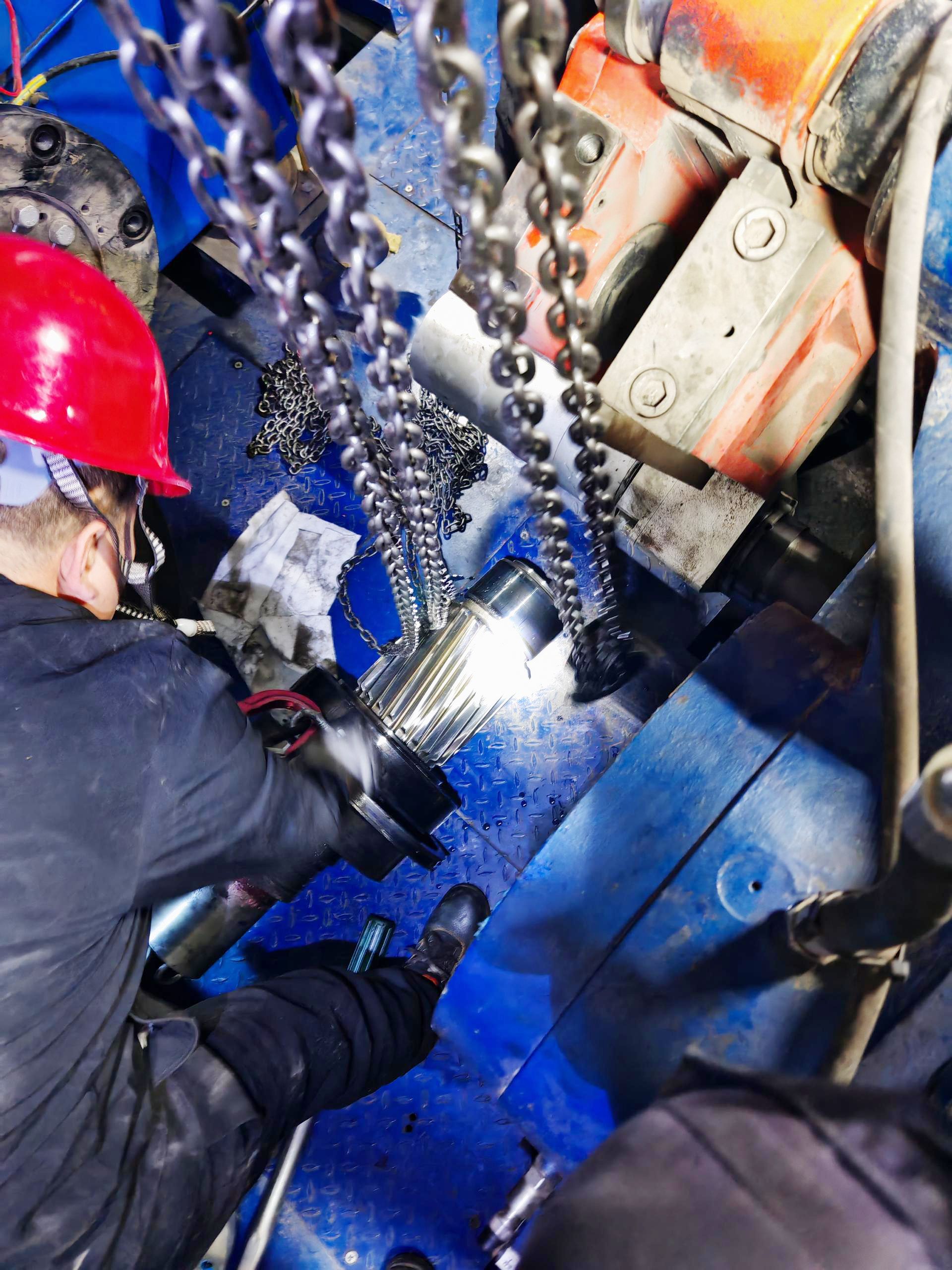 在此次例行巡检中,维护团队通过动态监测发现齿轮箱存在隐患,便立即启动预防性维护方案,创新采用“在线监测+分段维护”的方式,凭借丰富的现场经验精准定位问题、优化维护手段,将原本需要停机20天的维护周期缩短至7天完成,既确保了设备长期稳定运行,又最大限度保障了用户利益。
