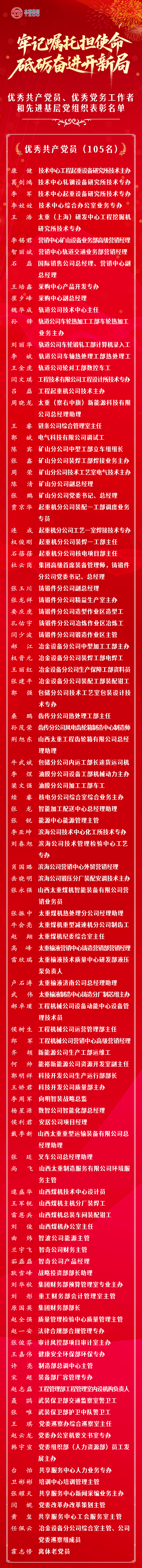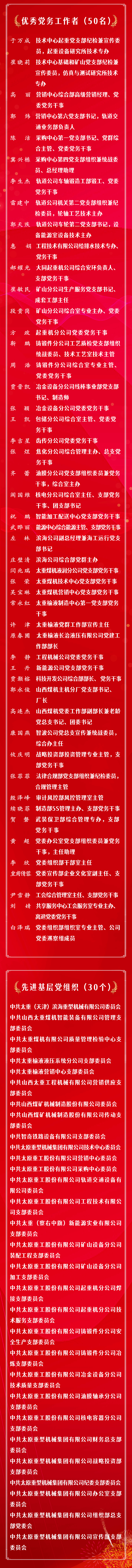 希望受表彰的优秀共产党员、优秀党务工作者和先进基层党组织,珍惜荣誉、保持本色,实干笃行、再立新功,充分发挥模范带头作用,为公司高质量高速度发展做出更大贡献。公司全体职工应该以受到表彰的先进典型为榜样,崇尚先进、学习先进、争当先进,共同朝着建设具有国际一流竞争力的现代智能装备制造企业阔步前行!