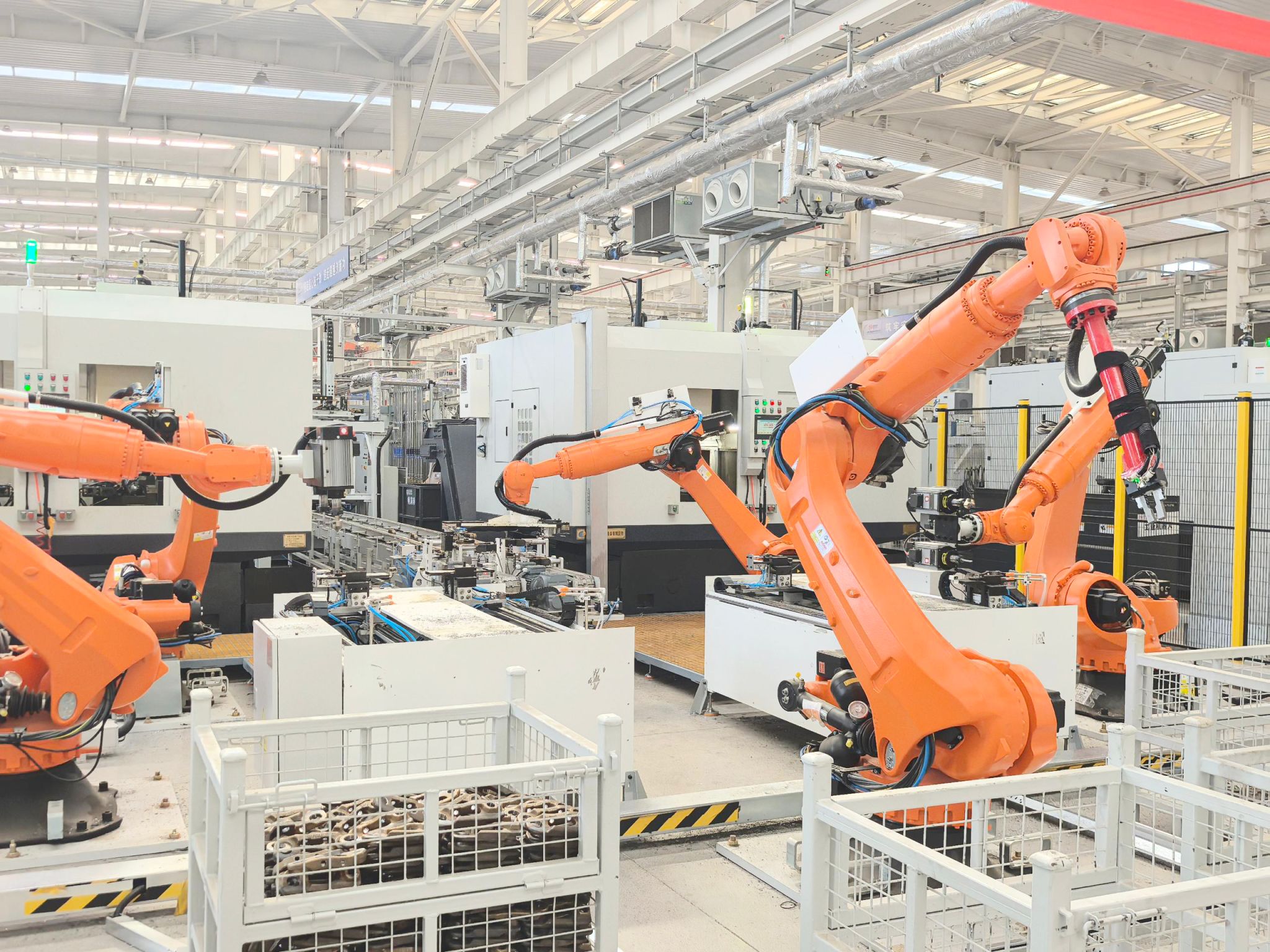 产能创新高,离不开数智技术的深度赋能。走进生产现场,机械臂精准作业,操作屏数据实时跳动,智能“工友”与职工紧密协作。在3D视觉系统的精准引导下,机械臂灵活完成组装、压装、打卷、浸漆等工序,动作行云流水、分毫不差。依托MOM智能管理系统,从排产到仓储调度全程优化,并实现对每条履带关键参数的实时监控,确保质量精准可控。在这里,AGV智能配送机器人穿梭不息,实现了物料流转全自动化,整条产线运行更加流畅,生产效率与产品品质同步跃升。