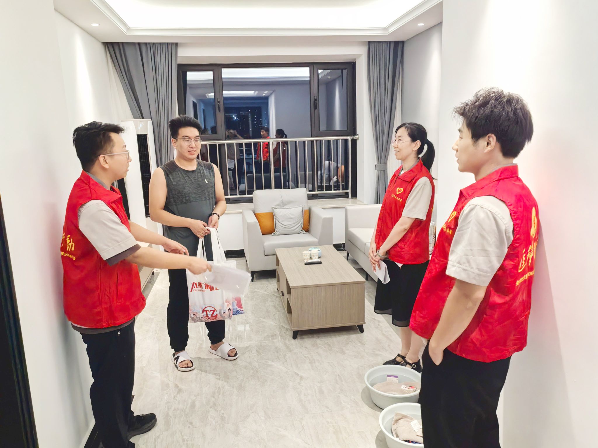 暖心接站 行李搬运 发放生活用品