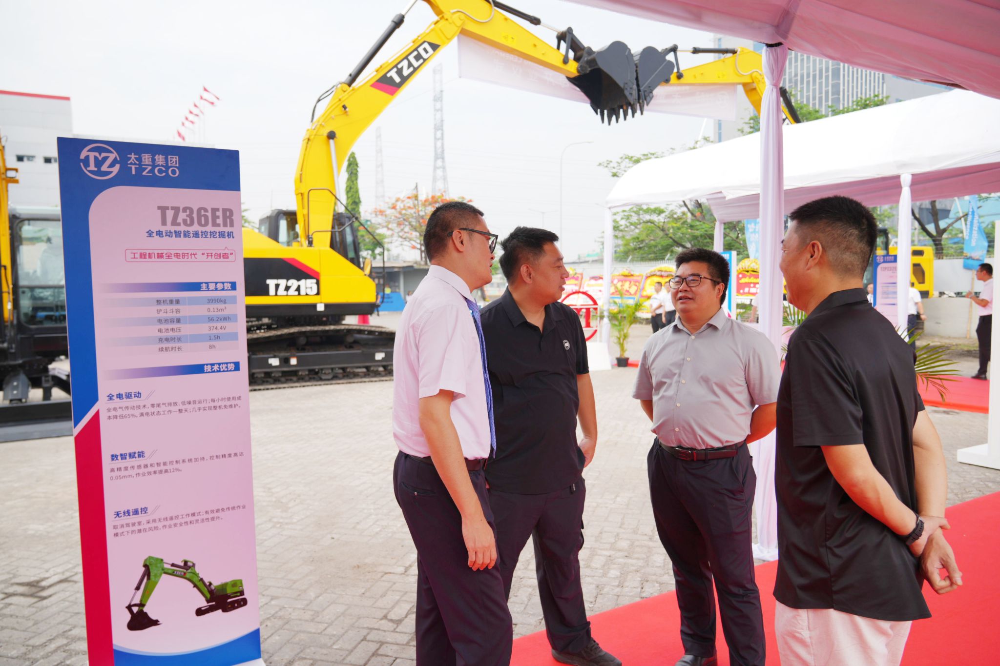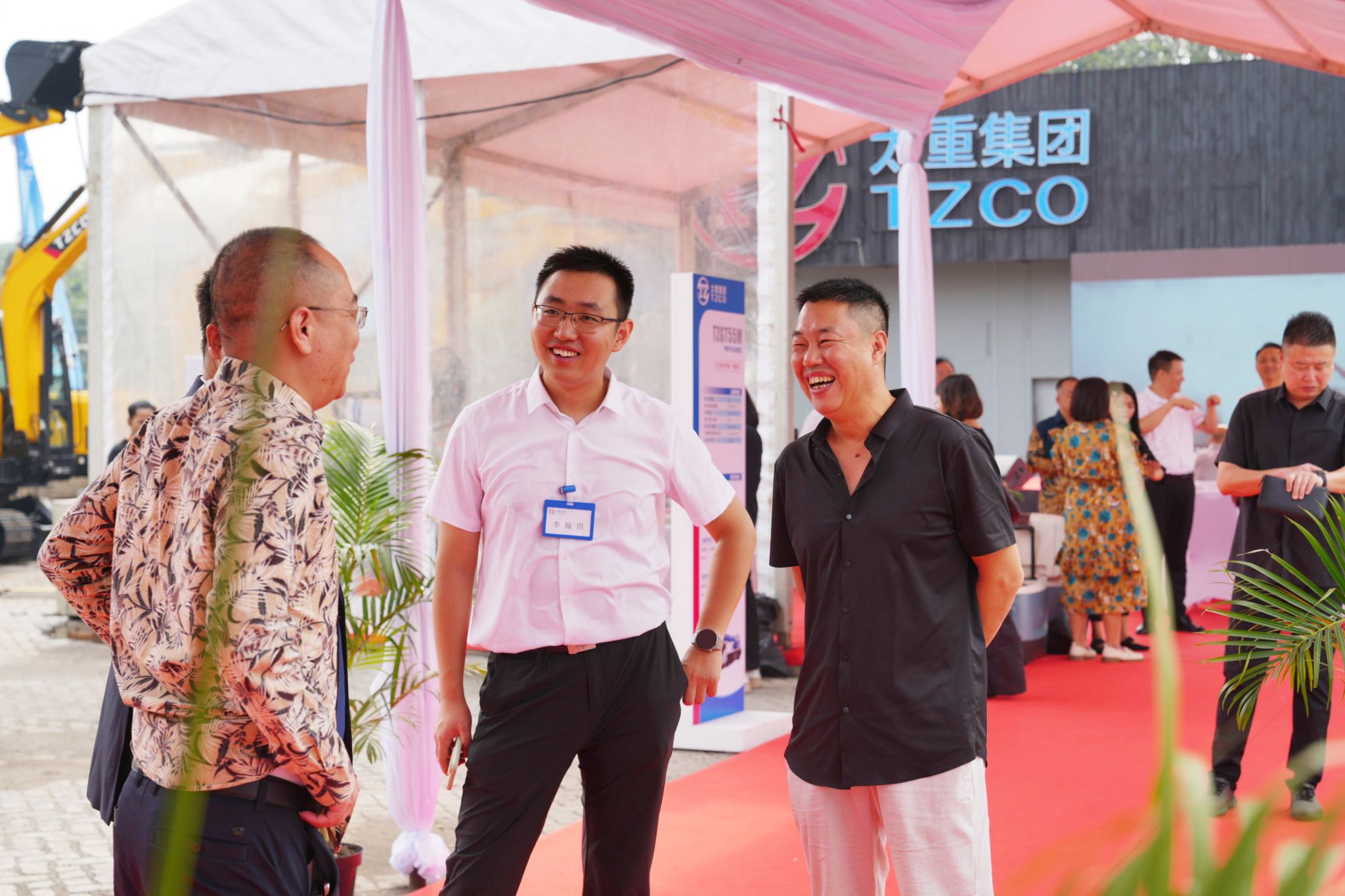 挖掘机环绕而立,擎起强劲有力的钢铁巨臂,欢迎各位与会嘉宾的到来。大家来往穿梭,兴致勃勃地察看永利赌场