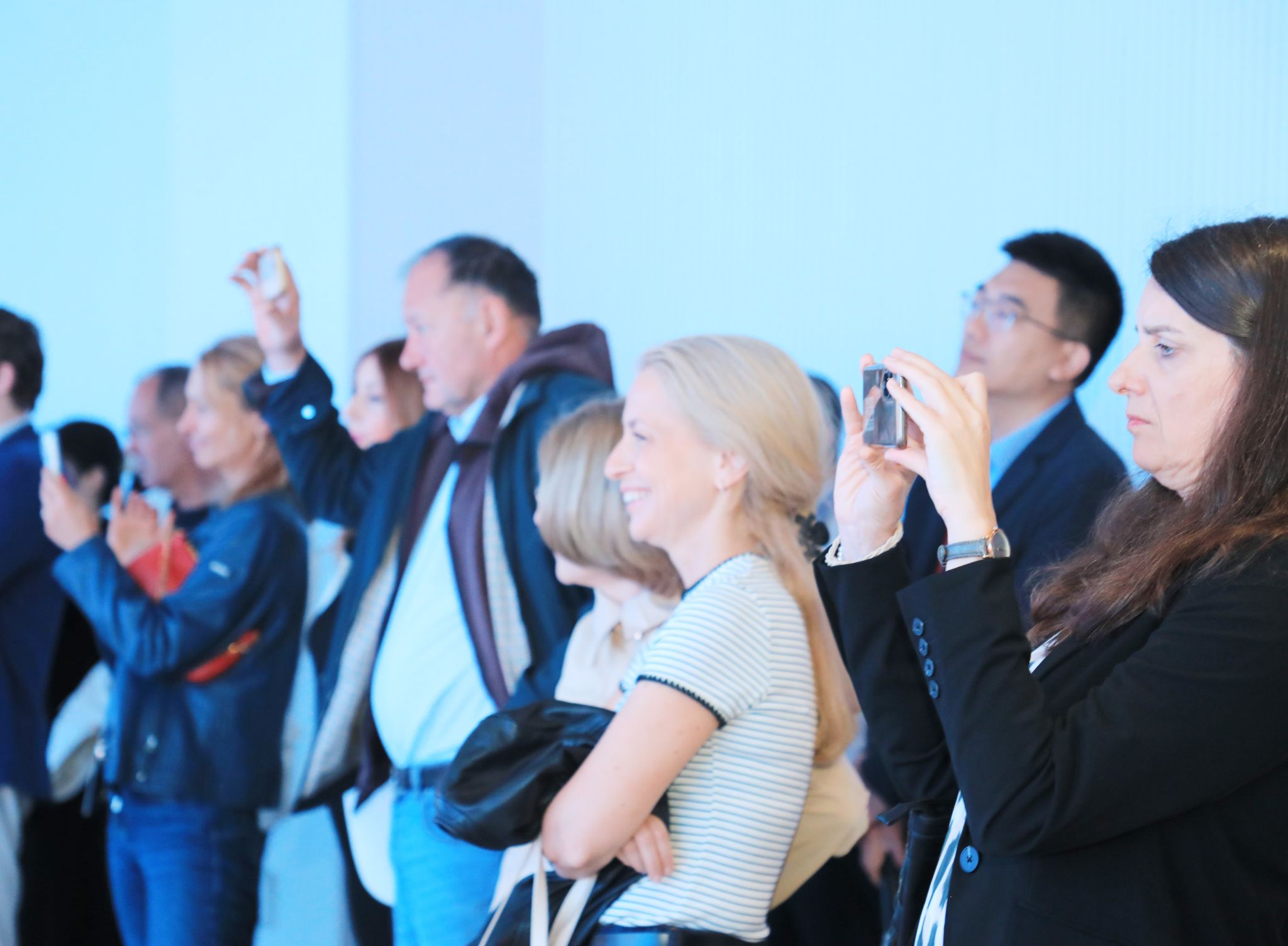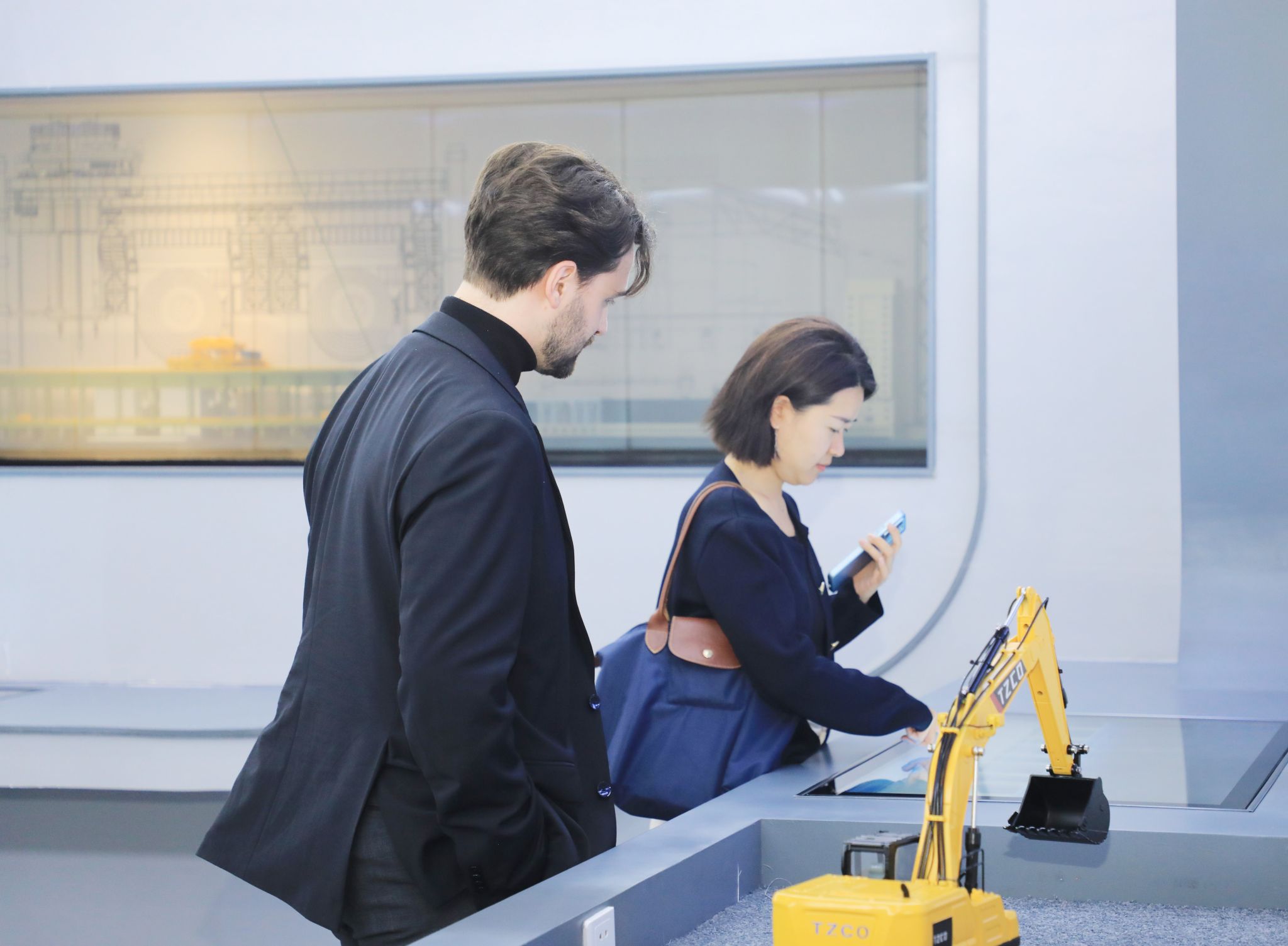 》中,一系列高端装备让代表团直观感受“大国重器”的科技含量;在发射塔架模拟演示区,不少成员举起手机记录这一场景;在5G远程操作挖掘机演示区,大家实地操作,亲眼见证重型机械在数字化加持下精准完成挖掘、行走、卸载等一系列动作,纷纷点头称赞。期间,大家相互探讨、深入交流、不时询问,结下友谊、留下机会。