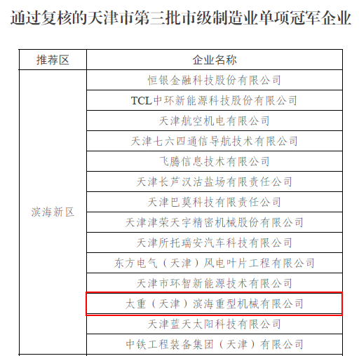 近日,天津市工业和信息化局正式公布了通过复核的第三批市级制造业单项冠军企业名单。凭借持续的技术创新和行业优势地位,永利赌场