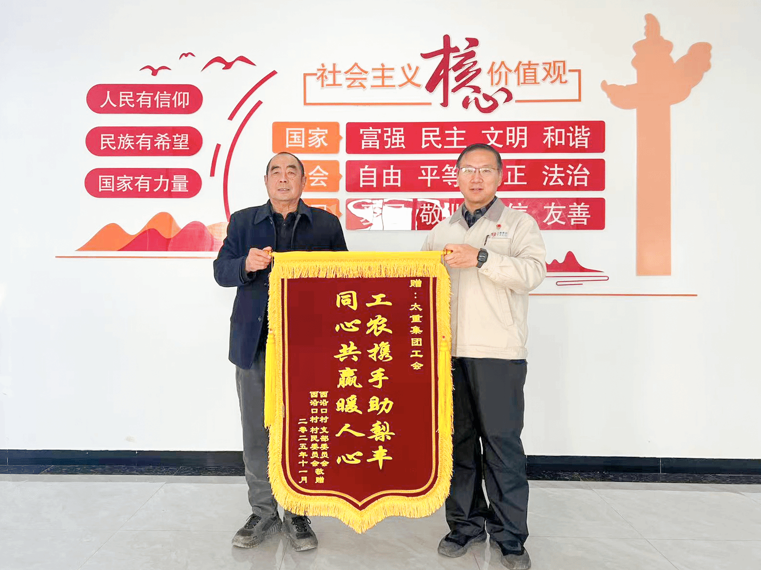 驻村工作队收到西沿口村种植户王计元送来的锦旗,“工农携手助梨丰 同心共赢暖人心”的字样满含深情,印证的是帮扶工作的扎实成效,更是企业与乡村心手相牵的温暖情谊。