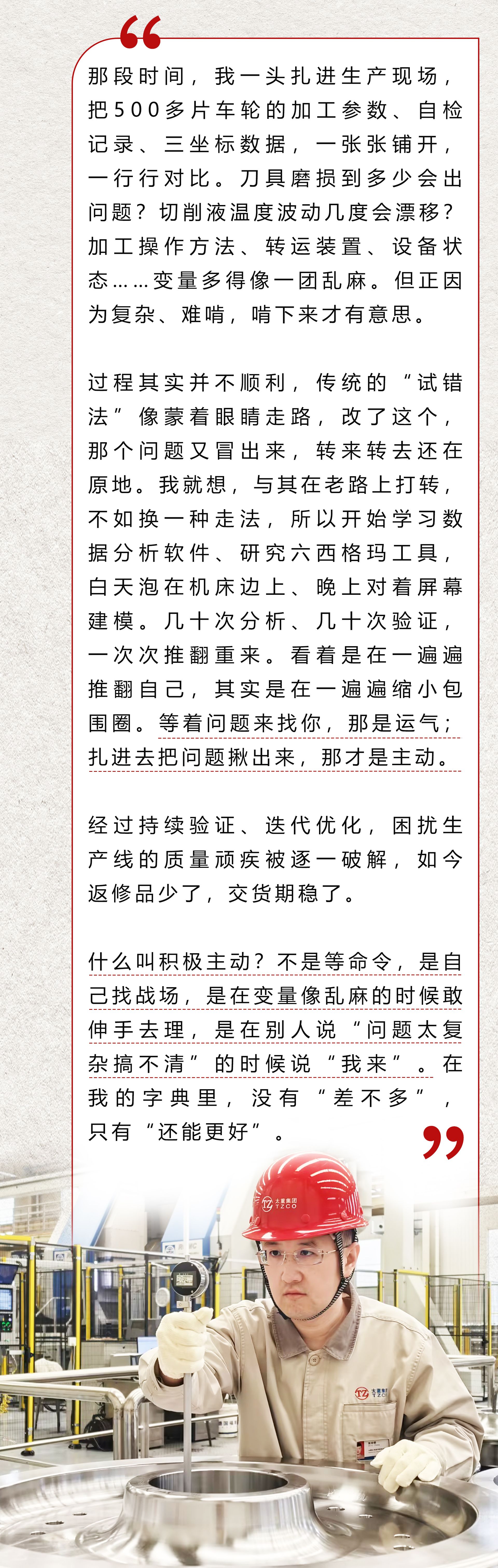 没人让他拆这堵墙,甚至没人觉得能拆——问题太复杂了,机床精度、操作方法、量具精度、测量方式……哪个环节都可能是影响问题的关键,谁说得清?可张治祺有自己的想法:视而不见,这墙只会越垒越高;主动动手,哪怕敲下一块砖,也是改善的开始。