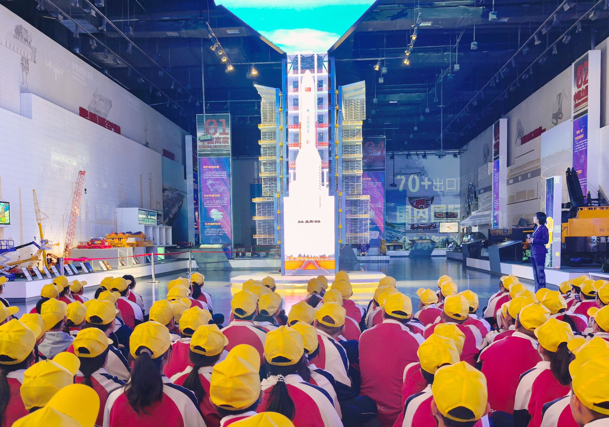 生产的航天发射塔架承担了我国所有的火箭发射任务。“三、二、一……点火!”模拟发射环节,大家兴奋地齐声倒数,随着“火箭”腾空,全场掌声雷动。