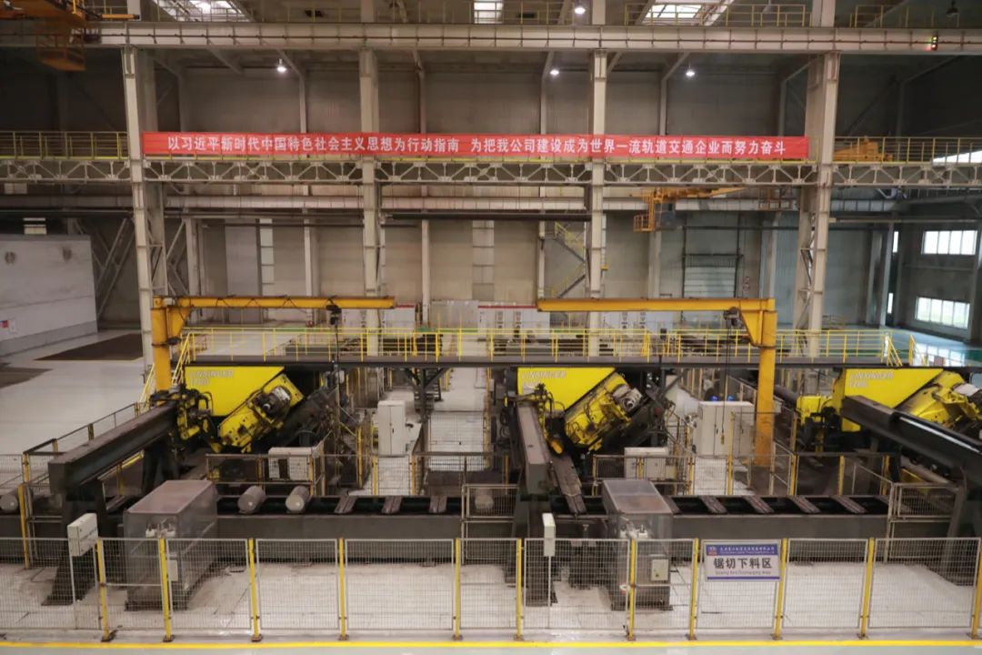 这是一条年产车轮40万片的生产线,也是目前国内自动化程度最高的车轮生产线。从这里生产出来的车轮,可用于高铁、地铁、大型客车等。