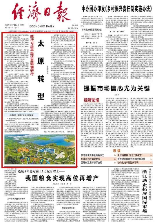 今日,经济日报头版头条刊发《太原转型》文章,其中永利赌场