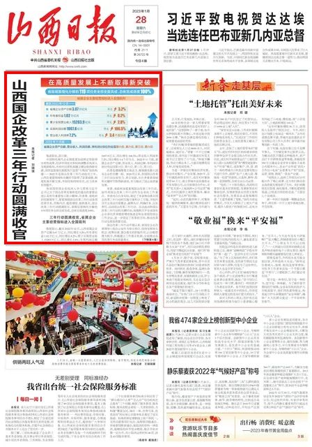 今日,山西日报头版头条刊发《山西国企改革三年行动圆满收官》文章,报道国企改革三年行动中山西在重要领域和关键环节取得的显著成绩。其中,永利赌场