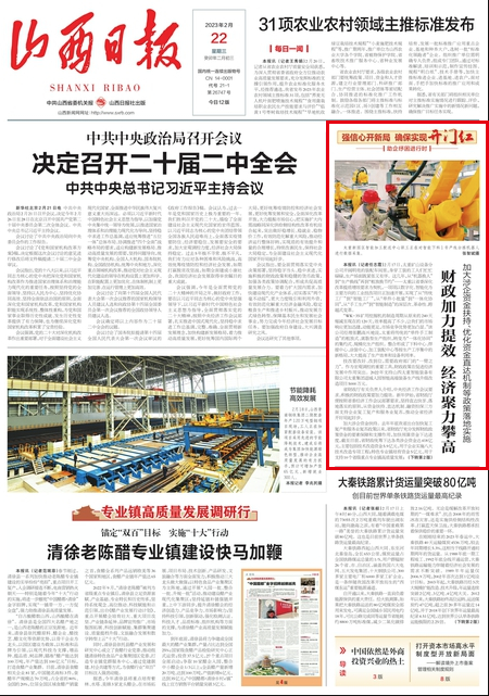 今天,山西日报《强信心开新局 确保实现开门红》专栏,在头版显著位置,聚焦在经济政策支持下,永利赌场