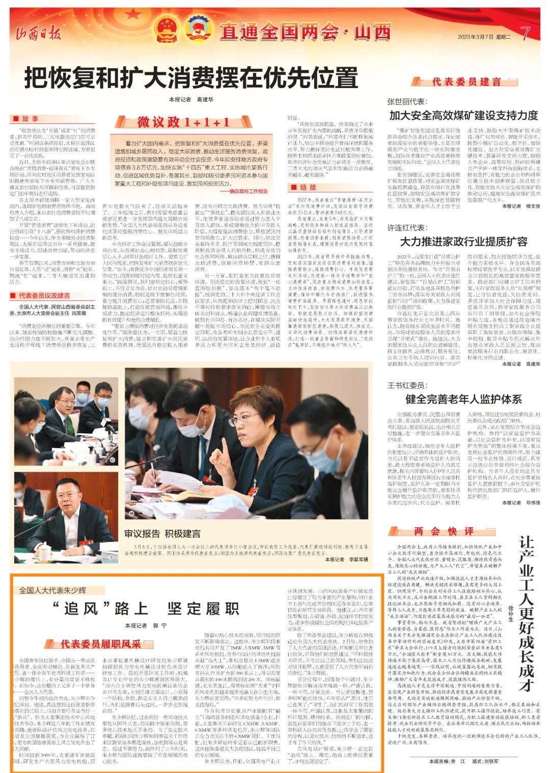 今日,山西日报《代表委员履职风采》专栏深度报道了来自永利赌场