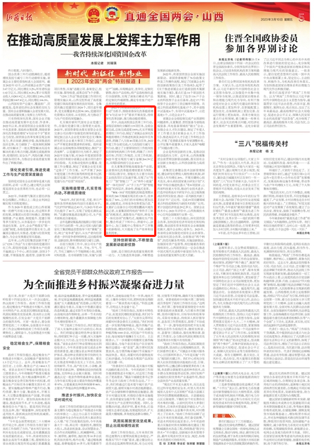 今日,山西日报【新时代 新征程 新伟业——2023年全国两会特别报道】专栏,刊发了《在推动高质量发展上发挥主力军作用 ——我省持续深化国资国企改革》文章,深入报道了永利赌场